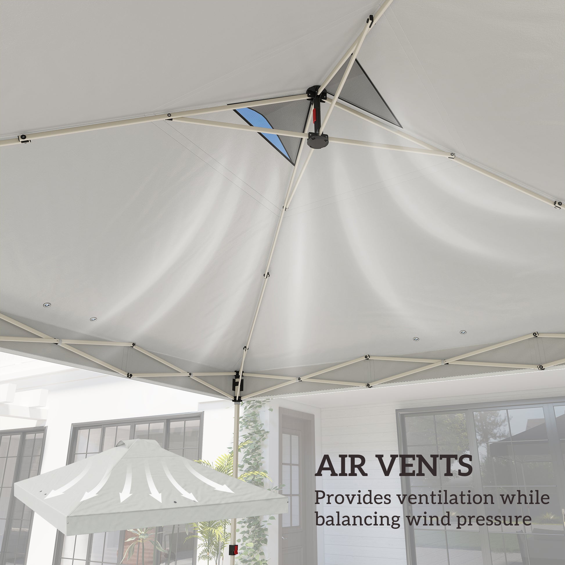 - Two top vents promote air circulation, keeping the area underneath cool