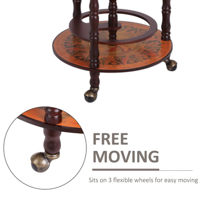Globe Shaped Retro Style Mini Bar Drink Cabinet Movable Wine Alcohol Beverage Storage Trolley Glass Bottle Holder with Wheels 36CM
