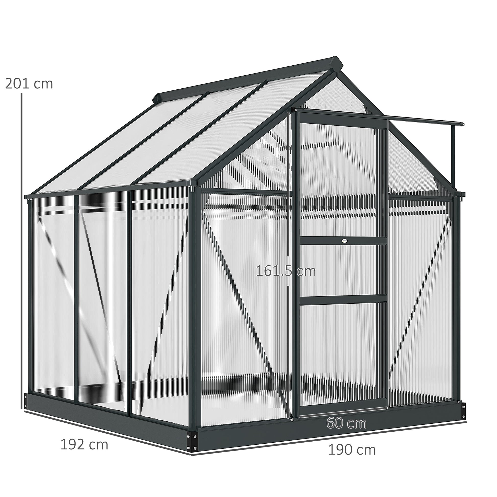 Start and continue the season right with this Outsunny 6ft x 6ft greenhouse. An open, walk-in design means it's easy to enter and leave, whilst giving you the full free space to set it up how you want. A powder-coated aluminium frame means a strong structure, with four ground stakes included to pin to the ground. Features a sliding door for easy access in and out, with a lift-up roof which holds in place - it's easy to let in fresh air, whenever you want.