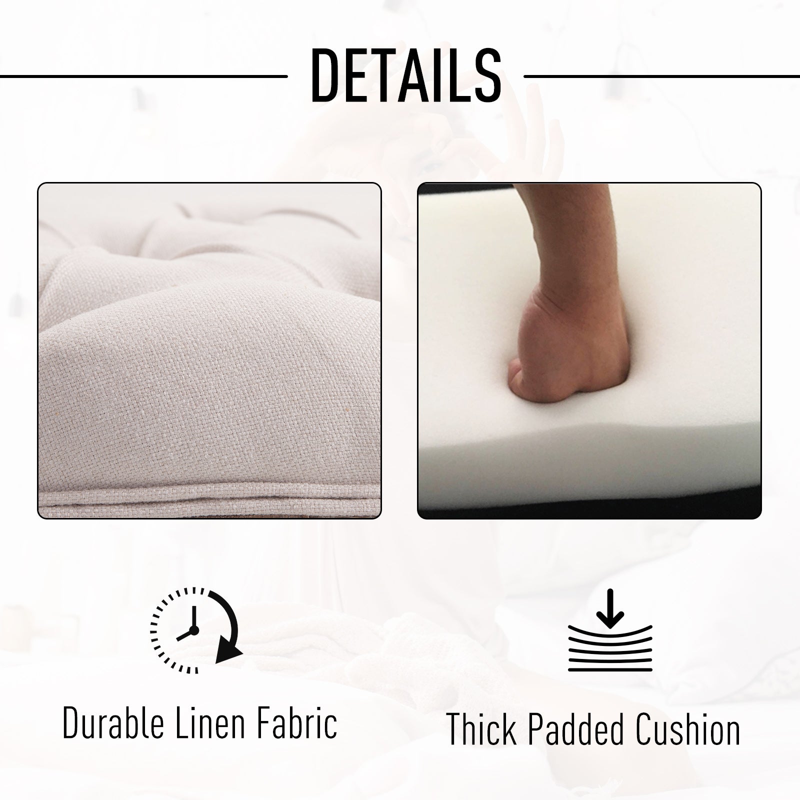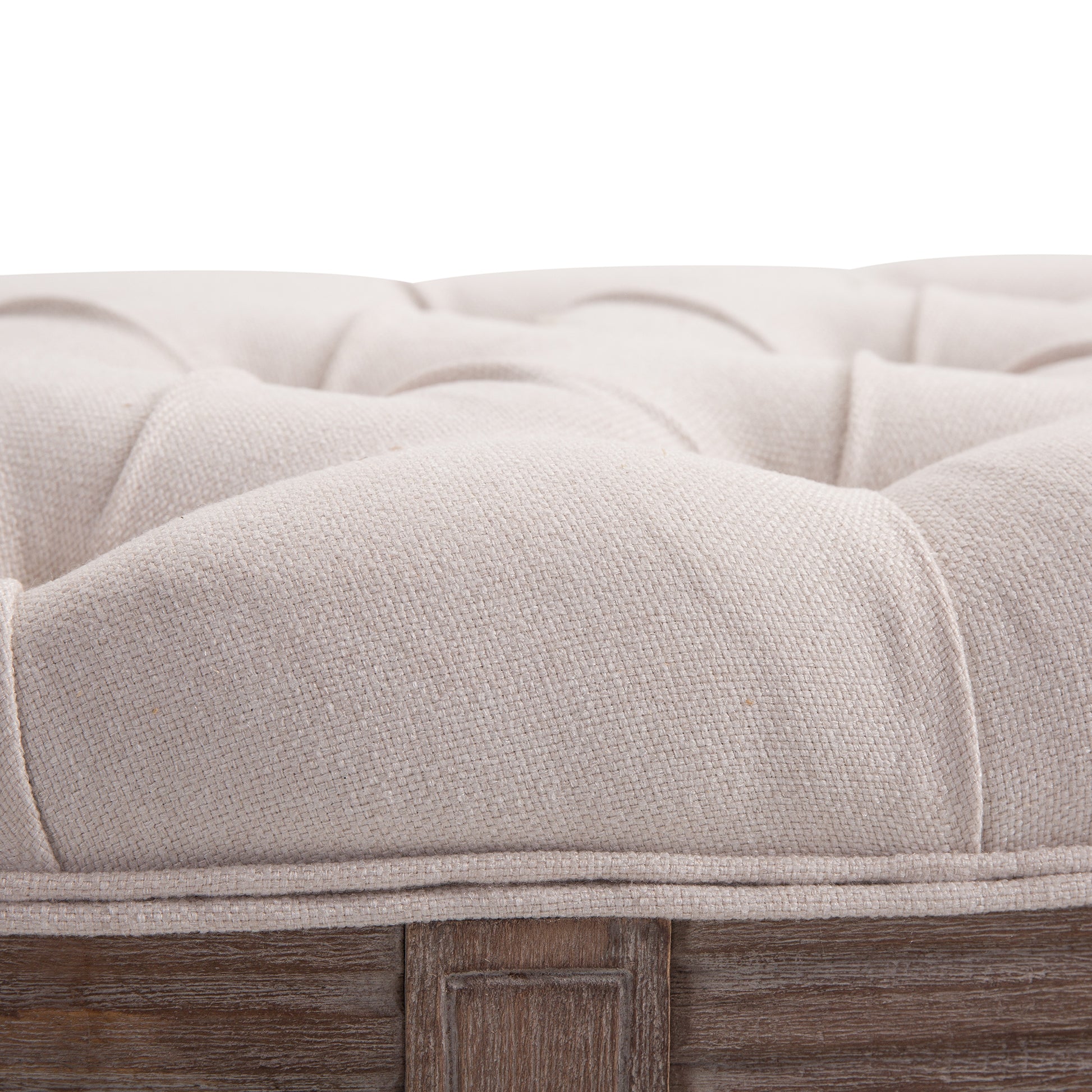 Half-Circle End Bench Ottoman Footstool Tufting Padded Seat Brushed Wood Base Antique Accents Home Seat Furniture Cream White