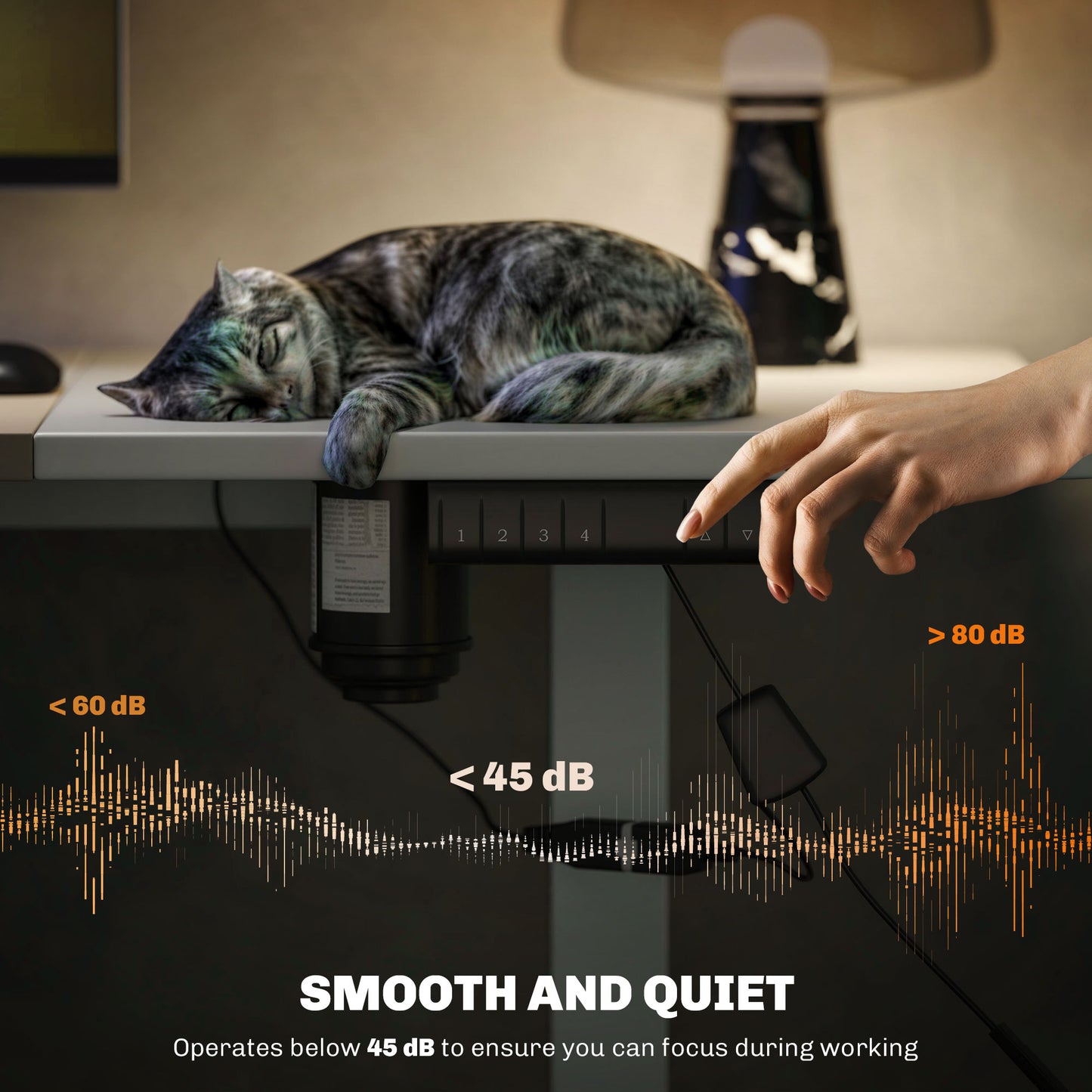 - 72-116cm adjustable height: use sitting to standing. Four handy memory presets. Noise below 45 dB for quiet operation