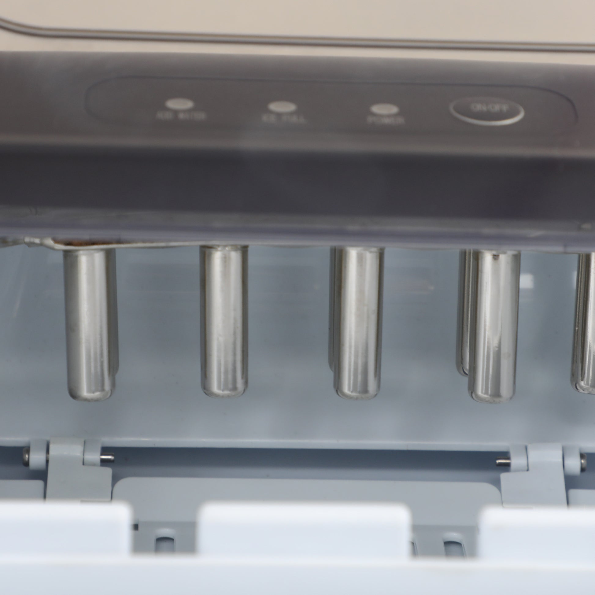 - 1.3 litre tank, makes 12kg ice every 24 hours: Ice maker machine is great for small gatherings, or just for everyday use. Makes nine bullet-shaped ice cubes in 6-12 minutes.