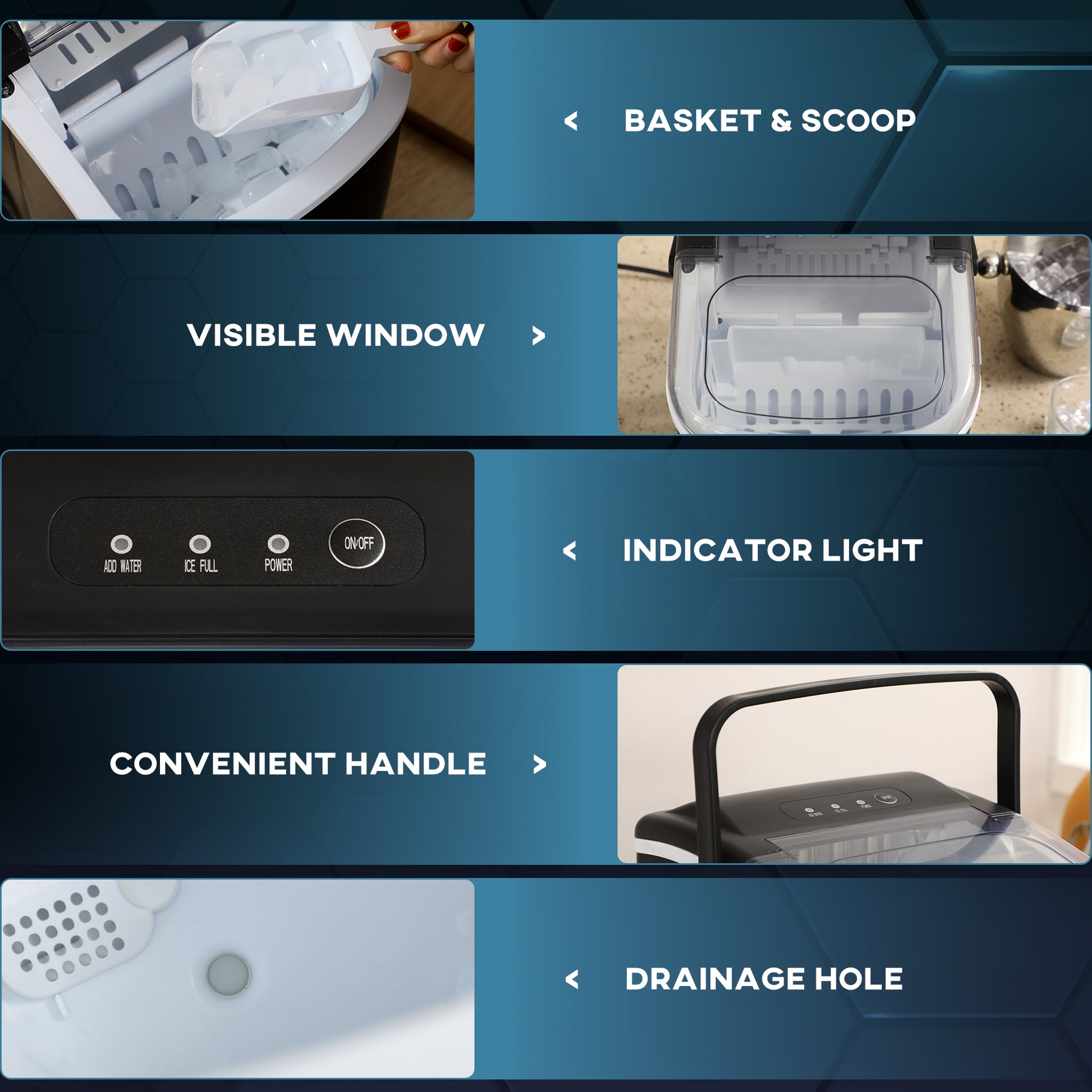 Ice Maker Machine Counter Top, 12Kg in 24 Hrs, 9 Cubes Ready in 6-12Mins, Portable Ice Cube Maker with Ice Scoop and Basket, Black