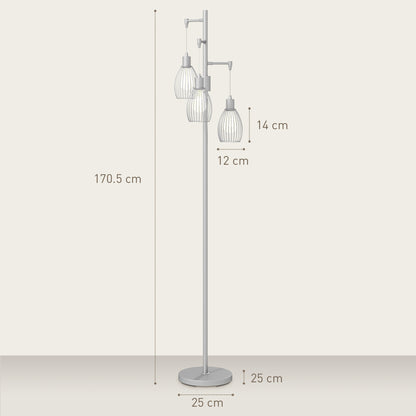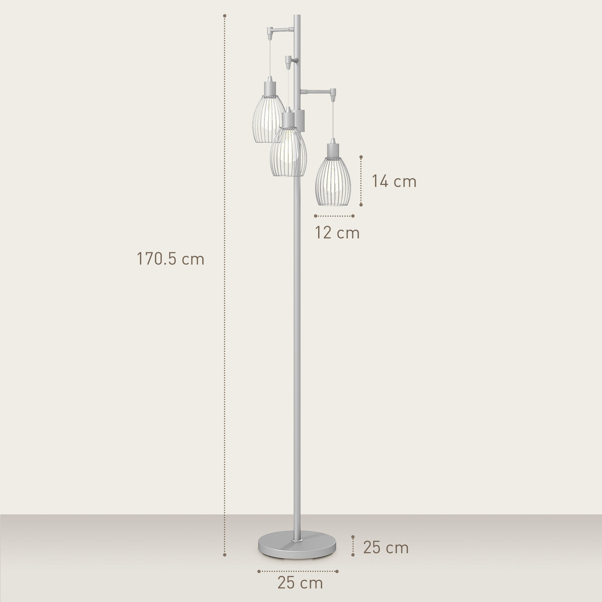 Bring industrial style into your home with this tall lamp. It features three lights for three lots of illumination - they can dim to create your own ambience. The silver tone cage shades create style. It's made from steel, so this industrial floor lamp is strong - with a round base to keep balanced. Transform your space instantly. For screw bulbs - maximum 40W.Specifications
