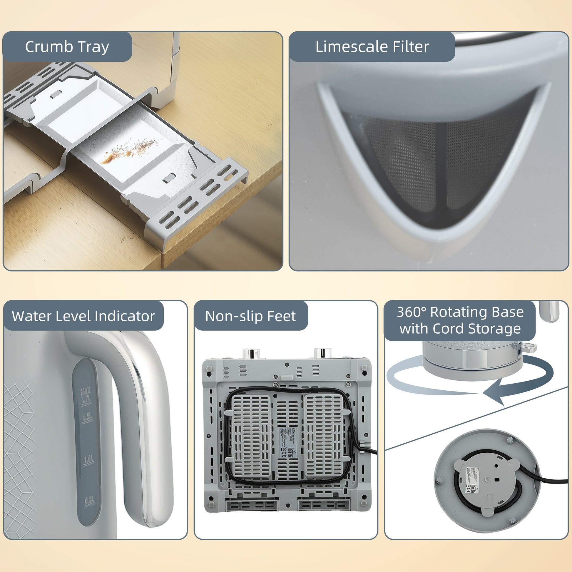 - Powerful 3000W kettle and 1860W toaster quickly prepares your breakfast