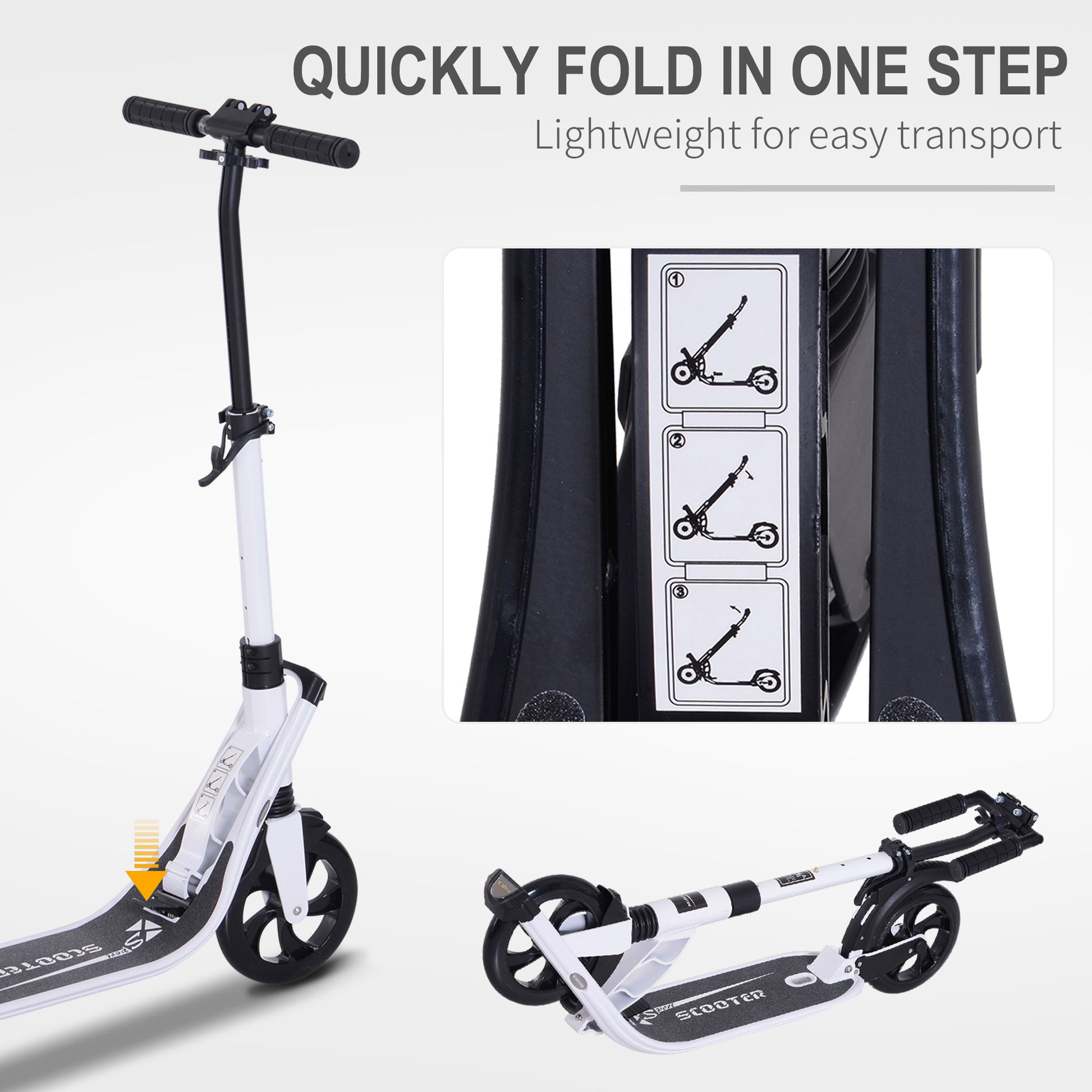 Ride around with this kick scooter adult from HOMCOM. The commuter scooter adult suspension frame is sturdy yet lightweight. It is crafted into an innovative folding design, allowing the commuter scooters to be opened and closed quickly. Adjustable from 95cm to 105cm, the 2 wheel scooter's handlebar is able to comfortably suit a wealth of heights. It is finished with a rear-wheel fender braking system, ensuring not only is this scooter safe to ride on, but it is also both safe and fun.