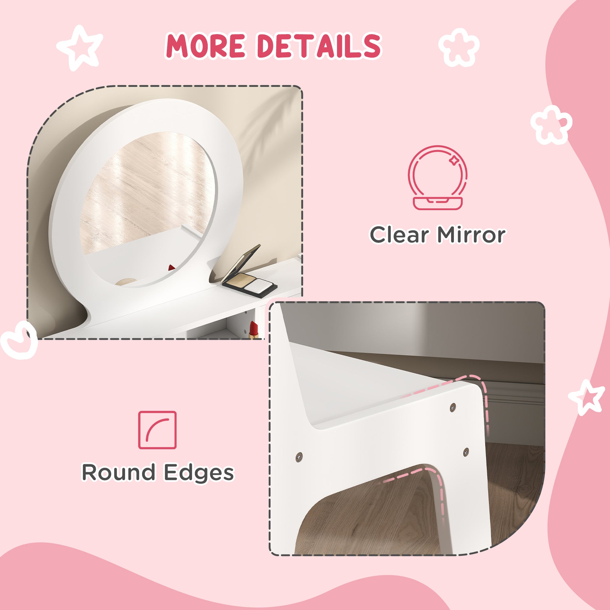 Kids Dressing Table with Mirror and Stool, Kids Vanity Table Make up Set with Storage Drawers Gift for Aged 3–8 Years Old - White