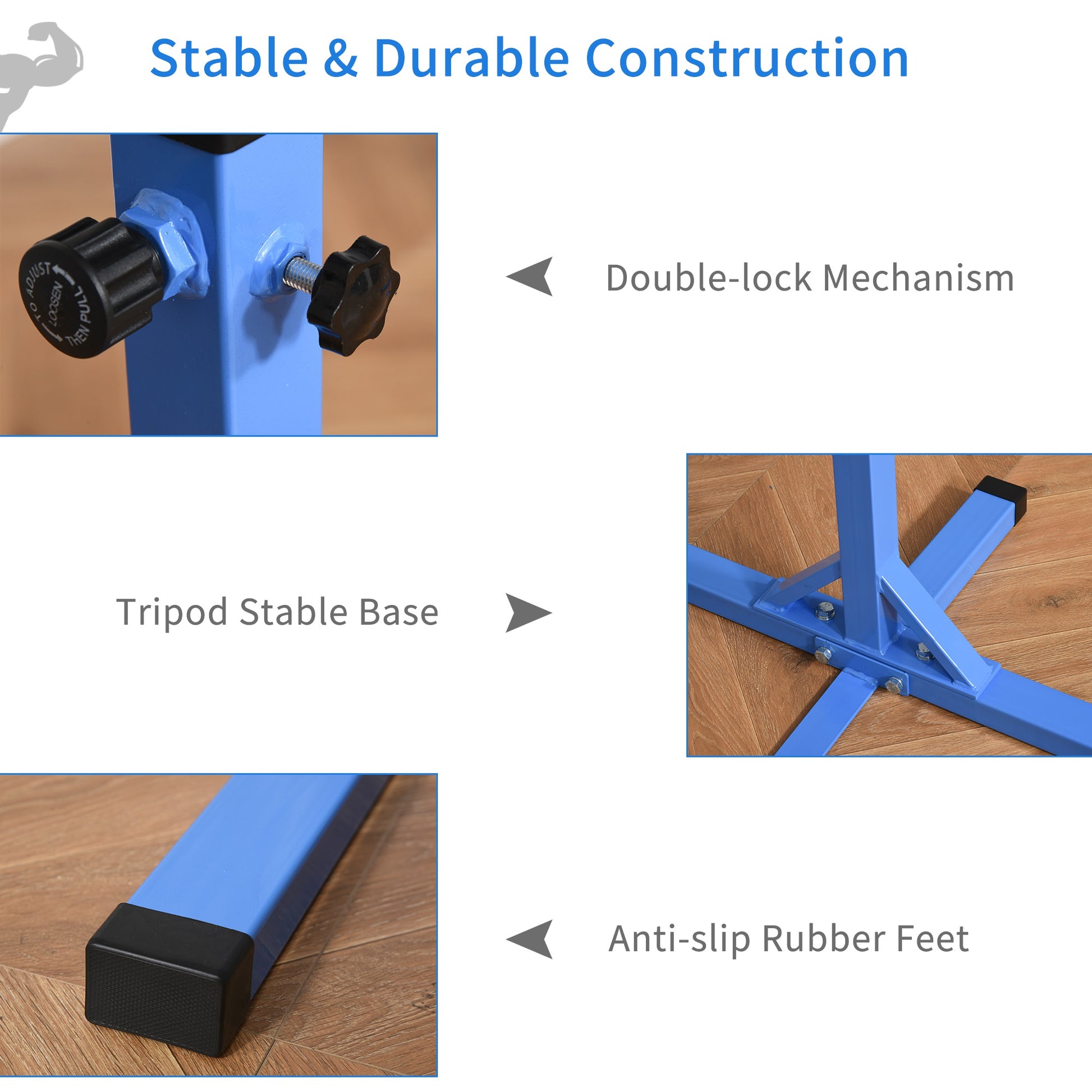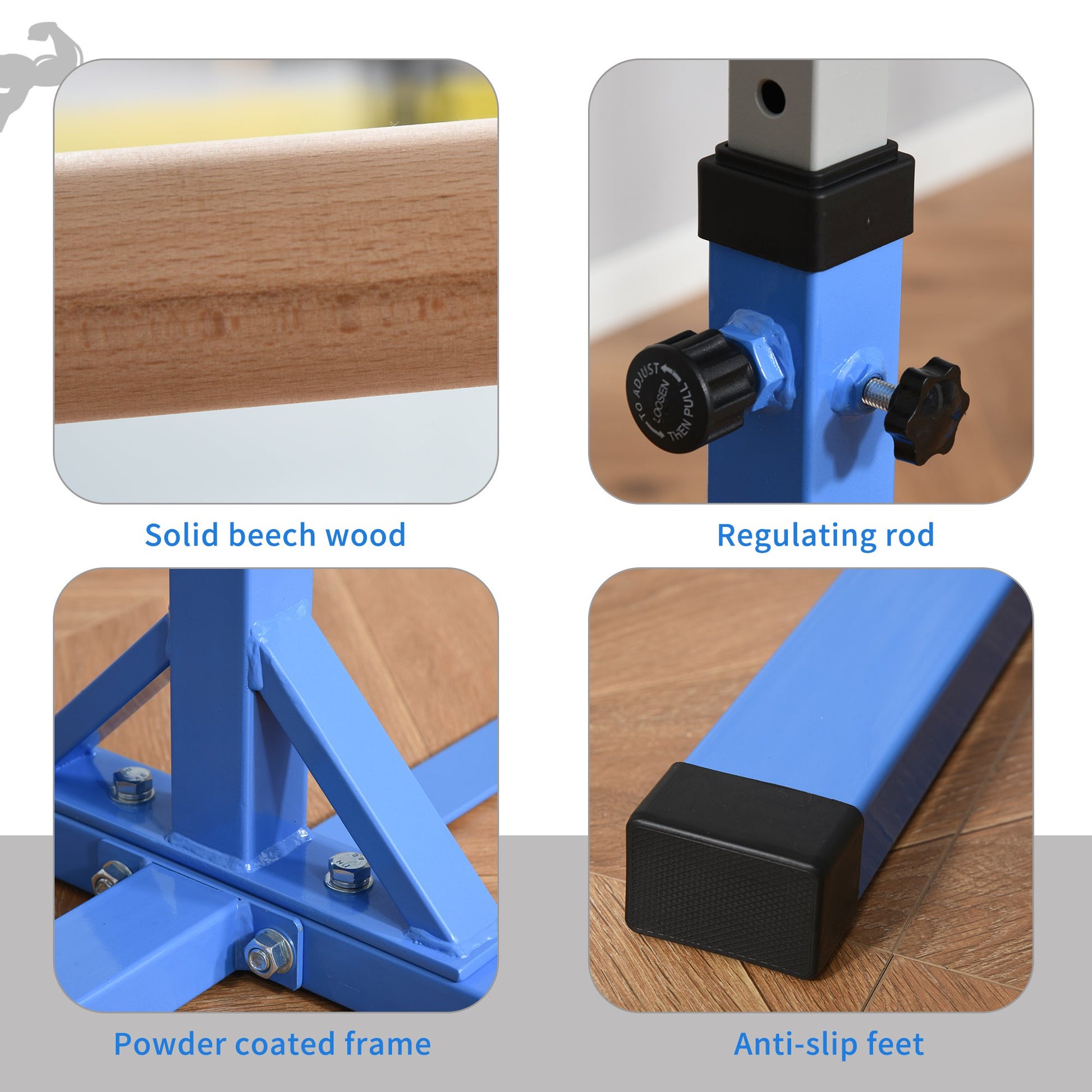 Height Adjustable Gymnastics Horizontal Bar For Kids Home Gym Training Children Junior Kip High Bar Fitness Blue w/ Steel Frame Wood