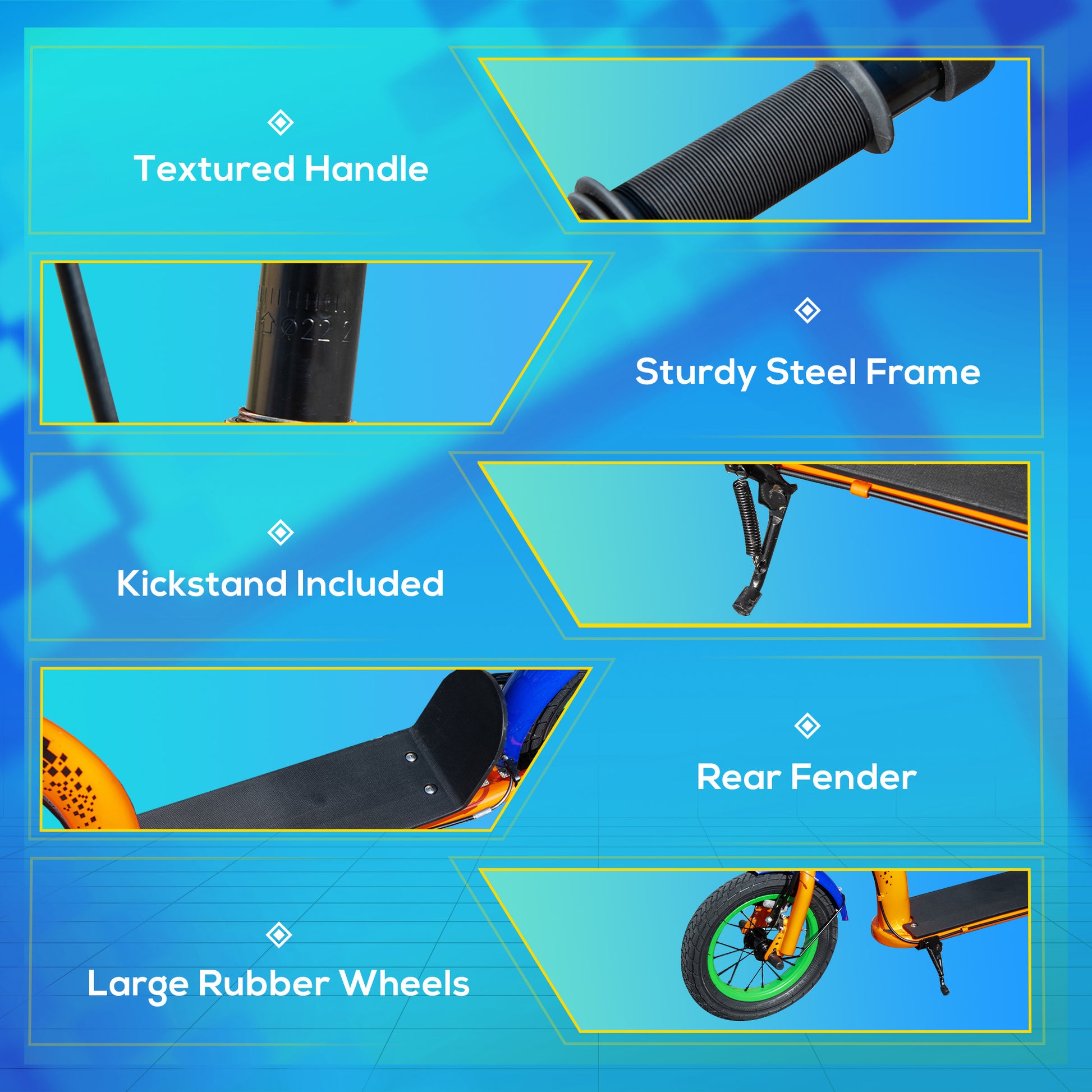 Kids Kick Scooter, Push Scooter, Adjustable Height, Front Rear Dual Brakes, 12-Inch Inflatable Rubber Wheels, for 5+ Years, Orange