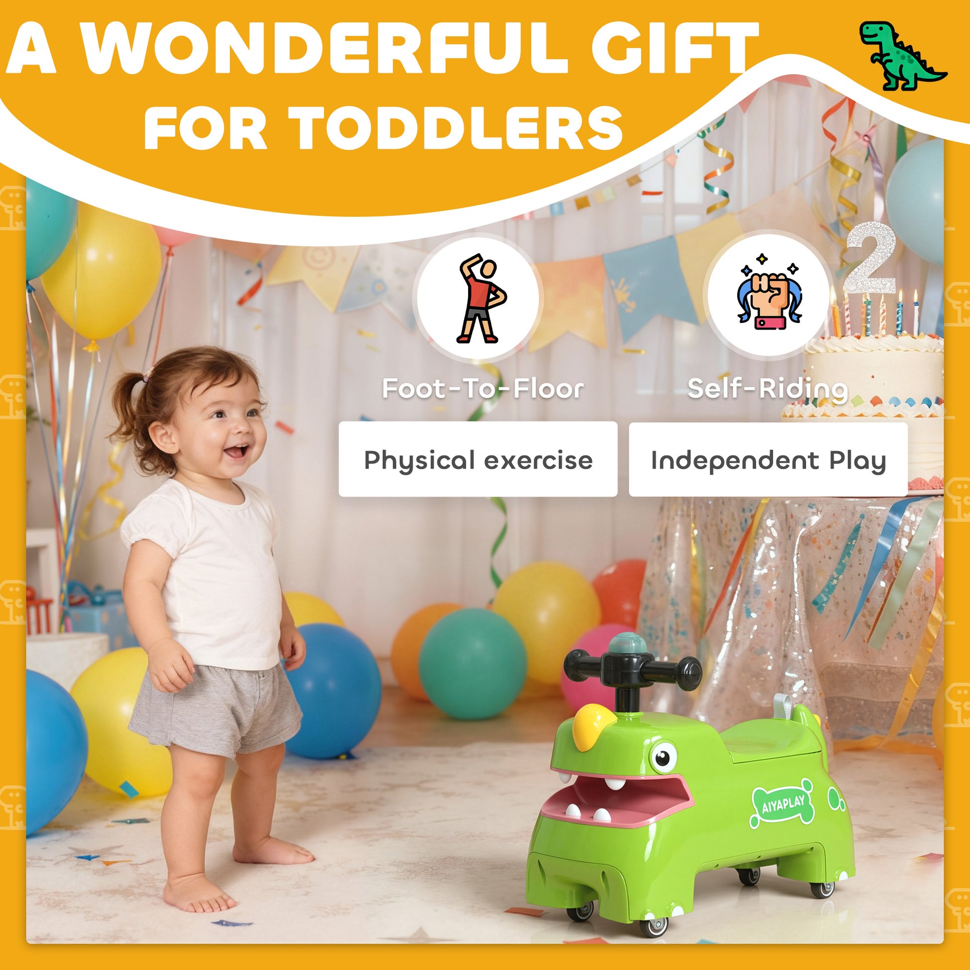 Kids Ride On Car, Dinosaur Shape Toddler Walker, Green