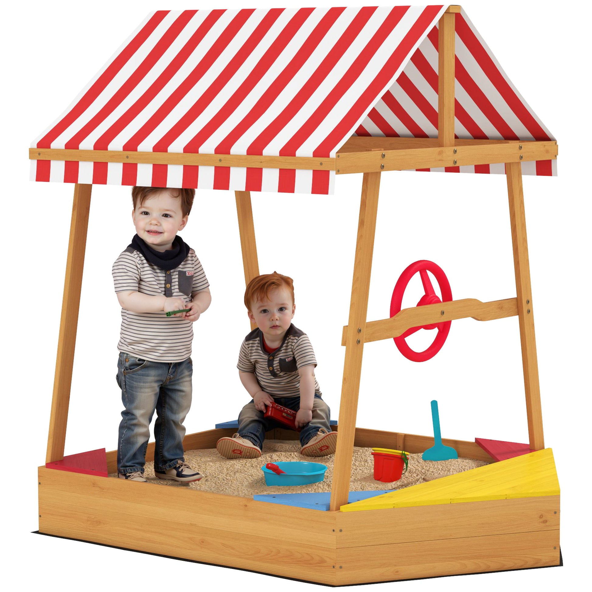 Set boat on a garden adventure with the AIYAPLAY Boat-Style children's sandpit! This unique wooden sandpit is shaped like a boat, complete with a rudder and deck for imaginative seafaring play. A weather-resistant cover shields little sailors from the sun, while the bottom-liner keeps sand tidy and bugs at bay. Suitable for any young captain and crew!Specifications