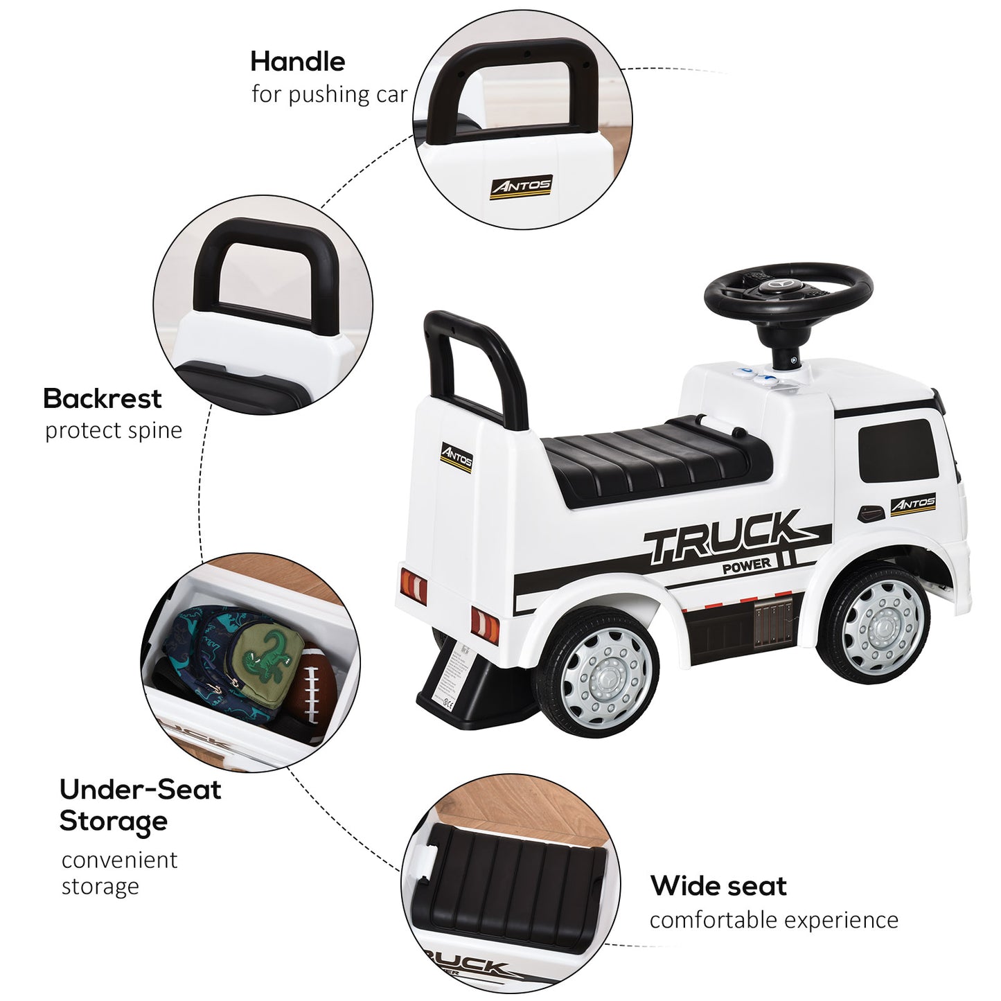 3-in-1 Ride On Car Licensed Mercedes-Benz Truck Stroller Toddler Under Seat Storage Handle Steering Wheel Horn for Baby 12 - 36 Months White
