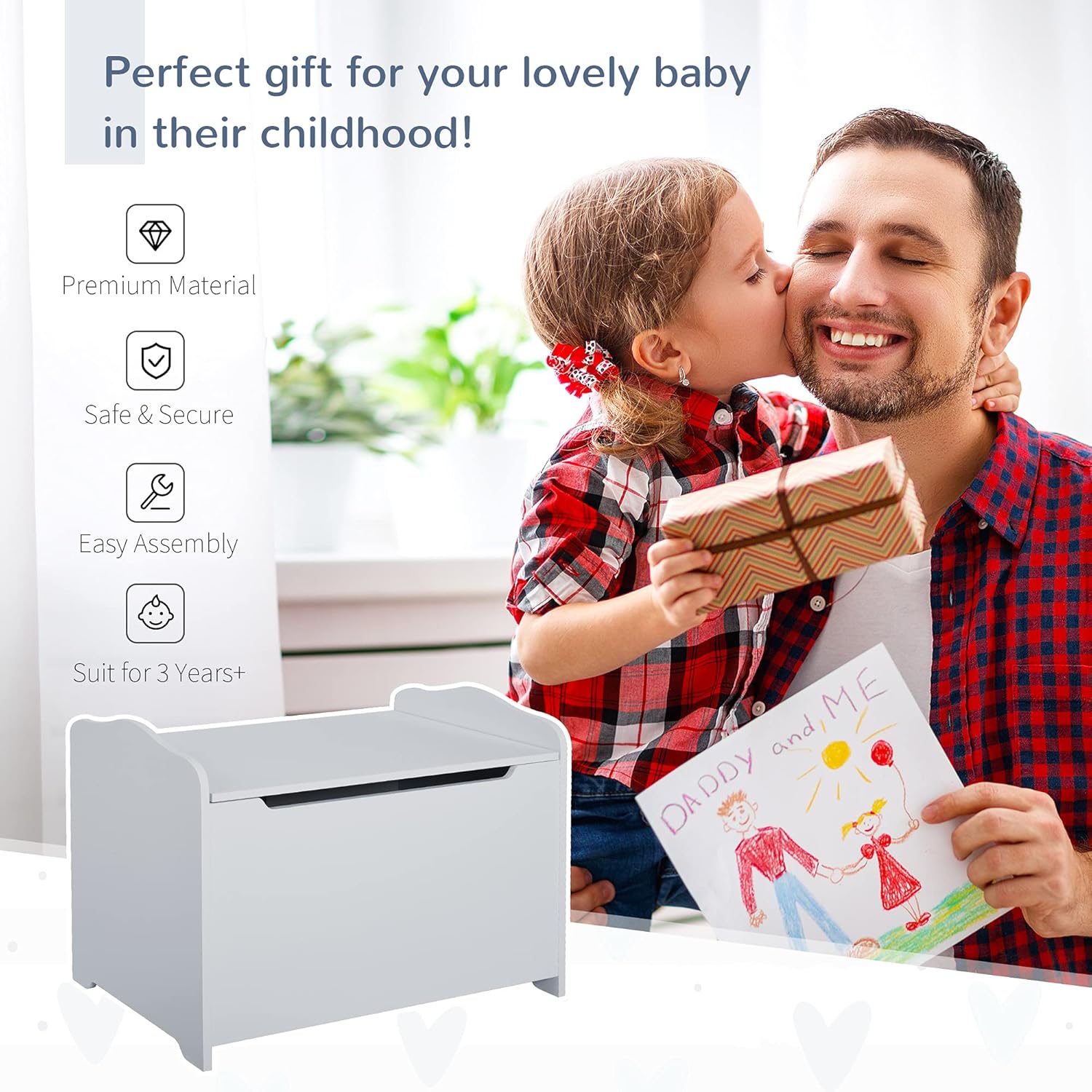 Give them their own place to keep toys, books, shoes and more stored with this cute box from HOMCOM. The safety pneumatic rod ensures the lid opens slowly and prevents it from slamming shut suddenly - they won't catch their fingers and hurt themselves. It's made from MDF, so it's solid and durable and can cope with daily demands from your child for a lasting addition to their playroom or bedroom. A great way to teach them how to keep their space clean and tidy for the years ahead.