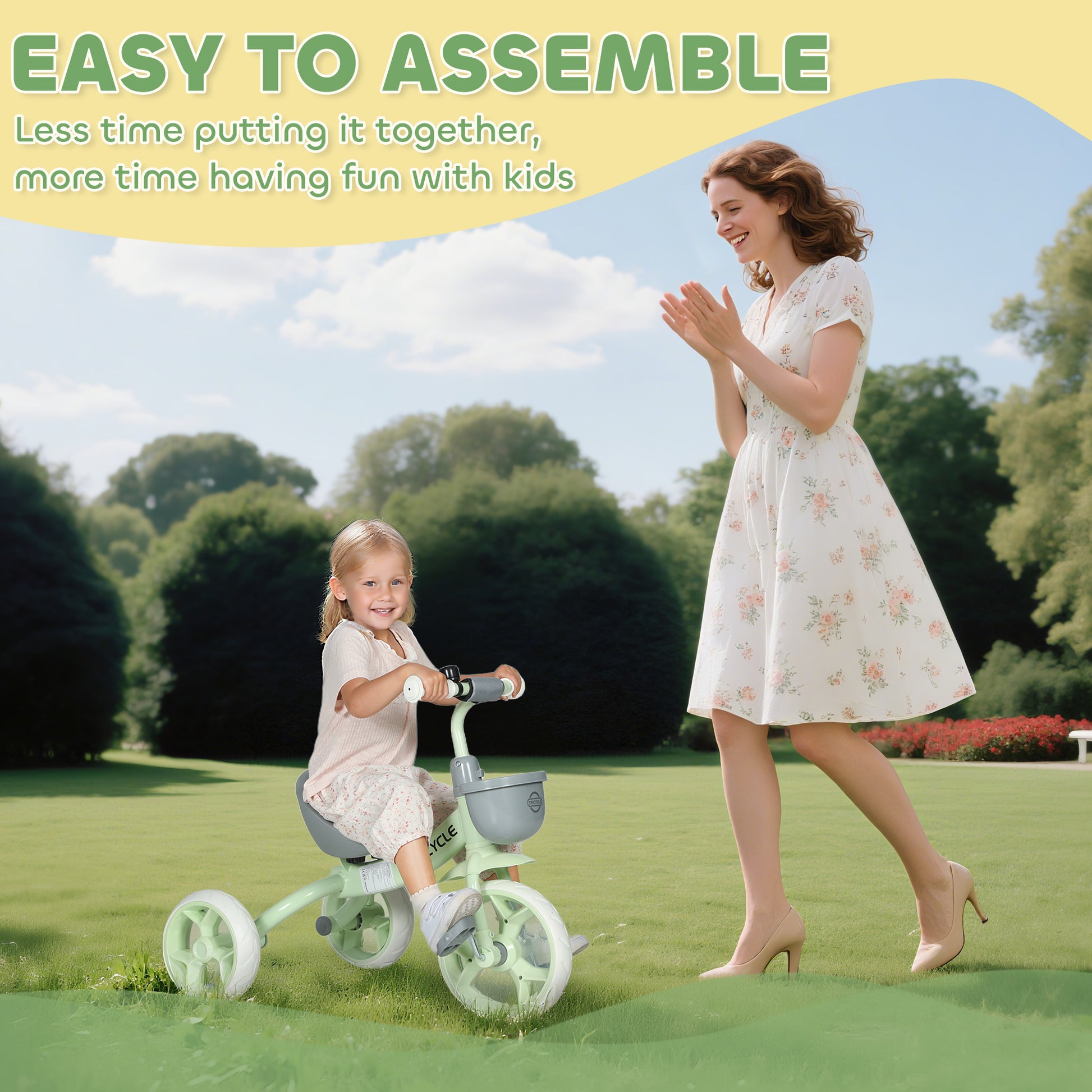 Kids Trike for Ages 2-5 Years, Toddler Tricycle with Front Basket and EVA Wheels, Indoor & Outdoor Use, for Boys and Girls, Green