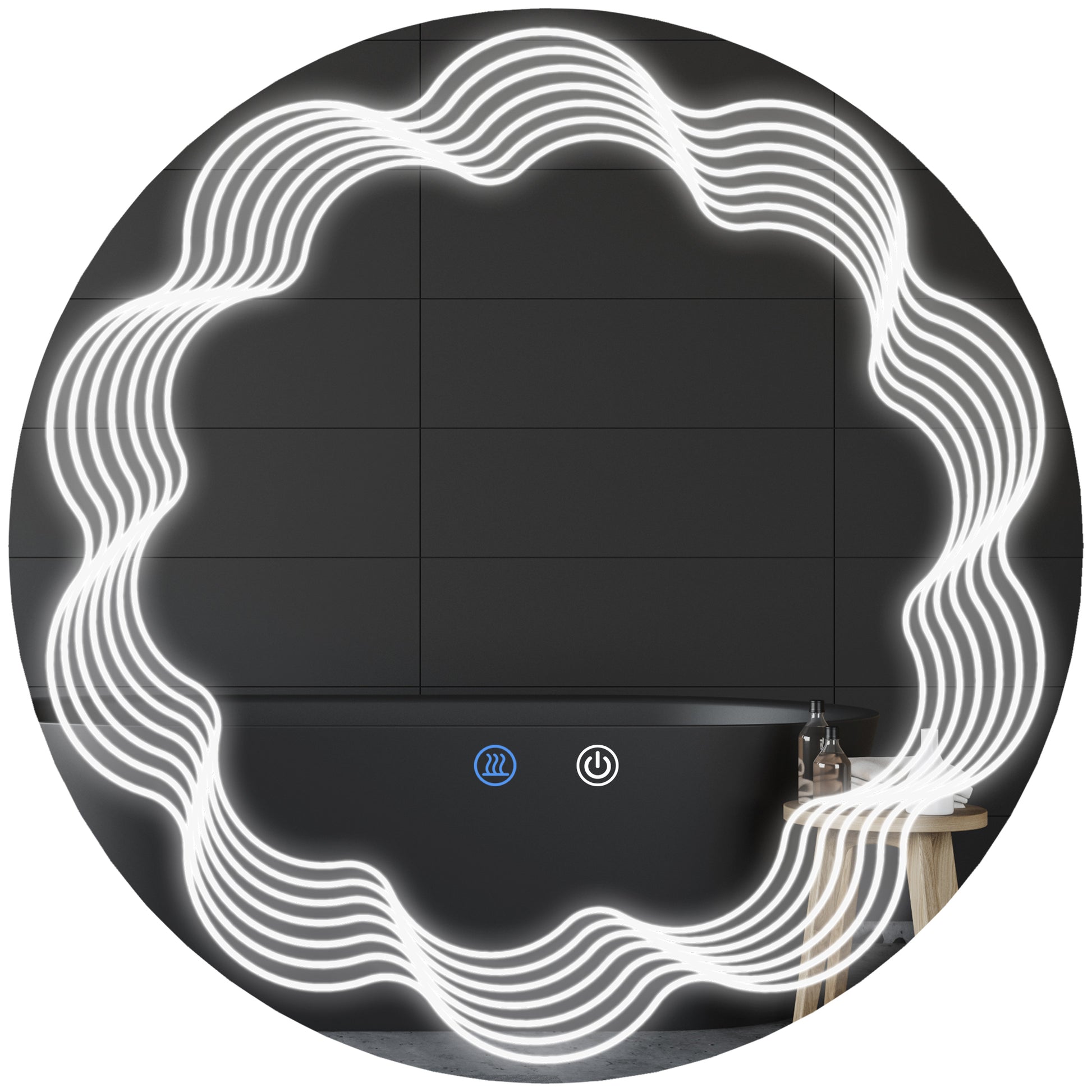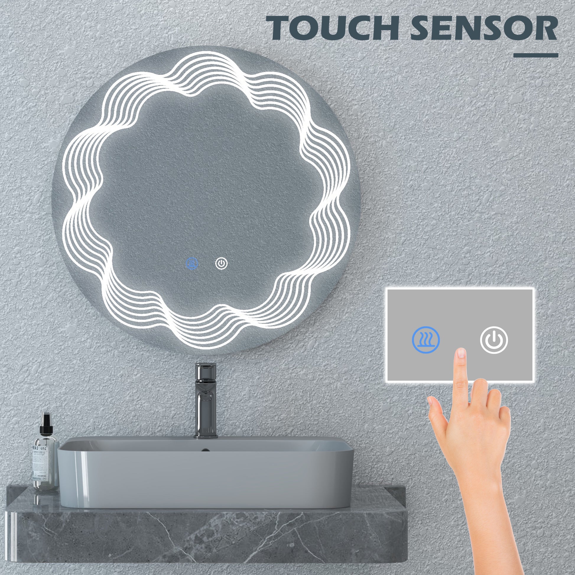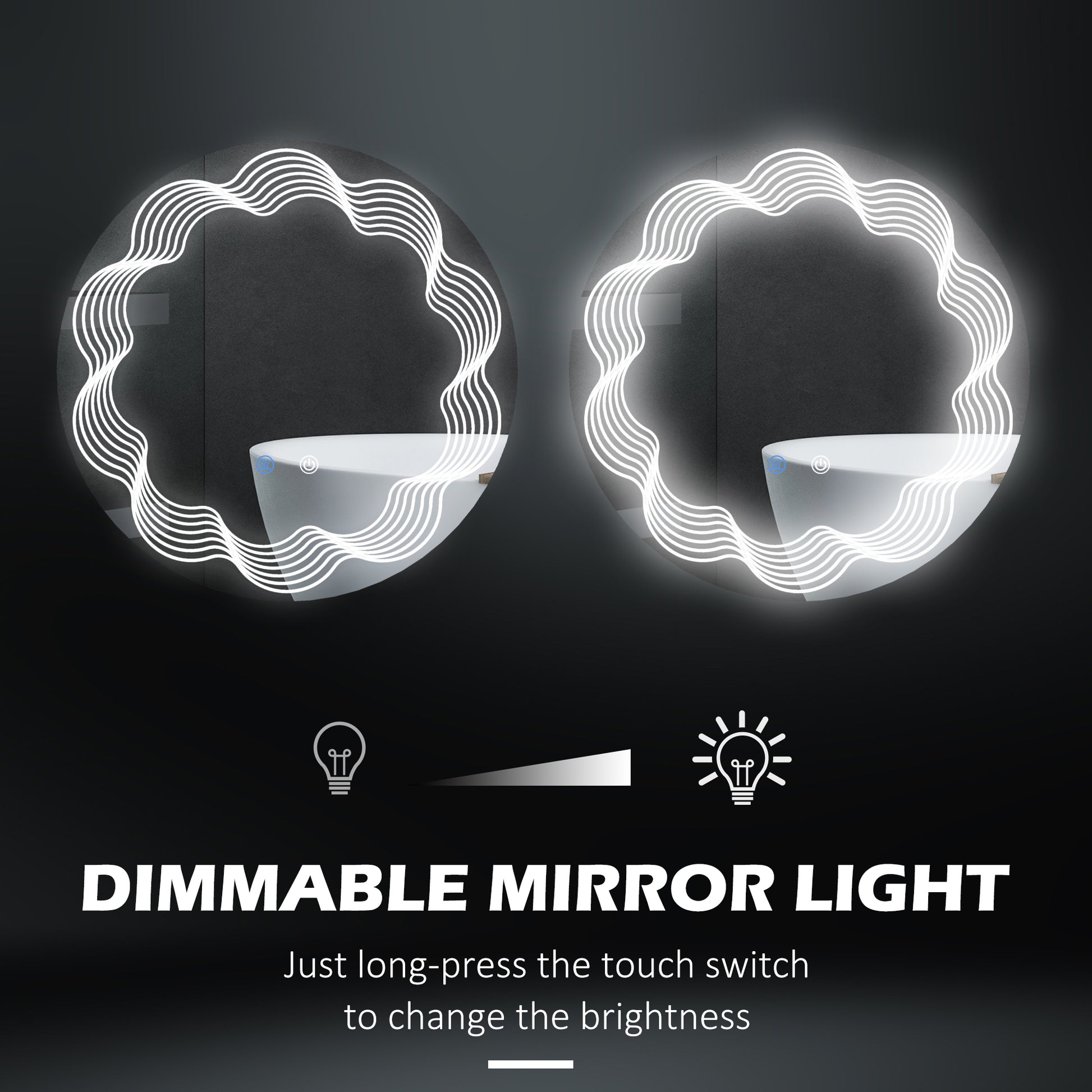 - Exquisite light pattern: Elevate your bathroom decor with our elegant light pattern, enhanced through laser engraving. This intricate wave detail adds a touch of sophistication, making our mirror for bathroom more exquisite than ordinary options