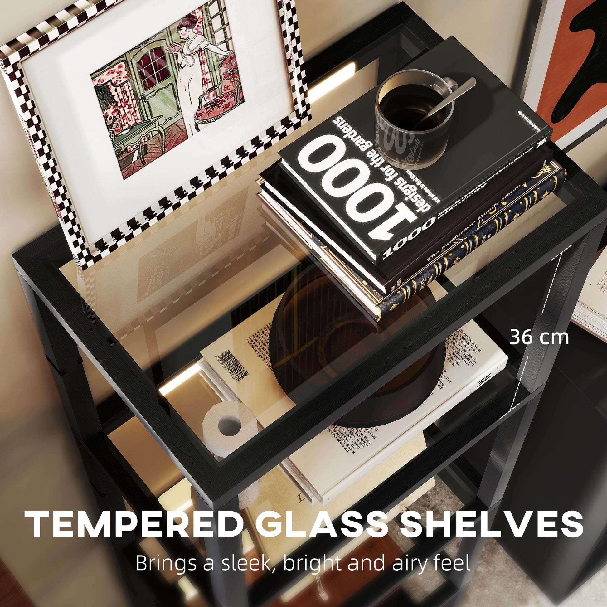 LED Floor Lamp with Glass Shelves, Dimmable Room Lamp, Black