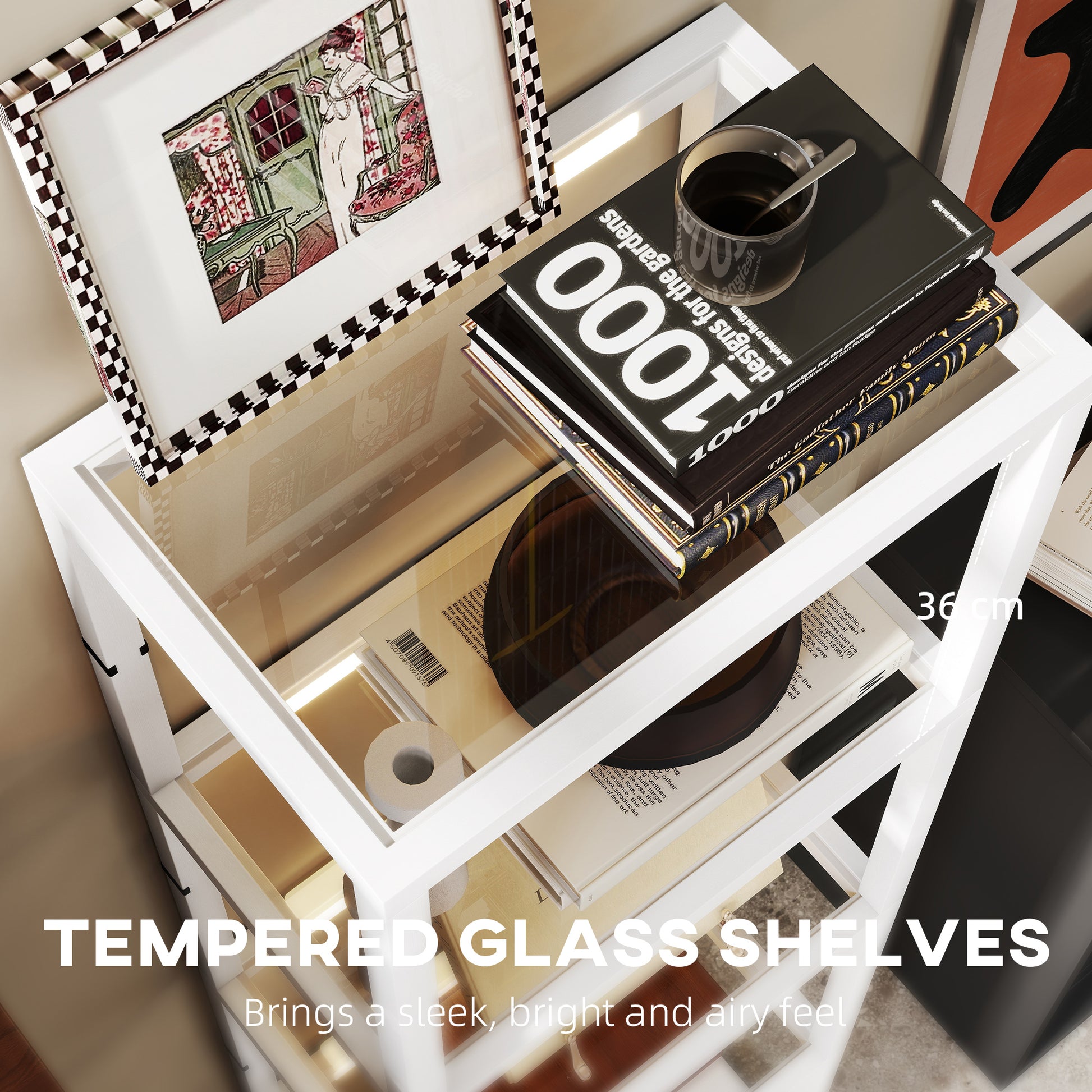 LED Floor Lamp with Glass Shelves, Dimmable Room Lamp, White