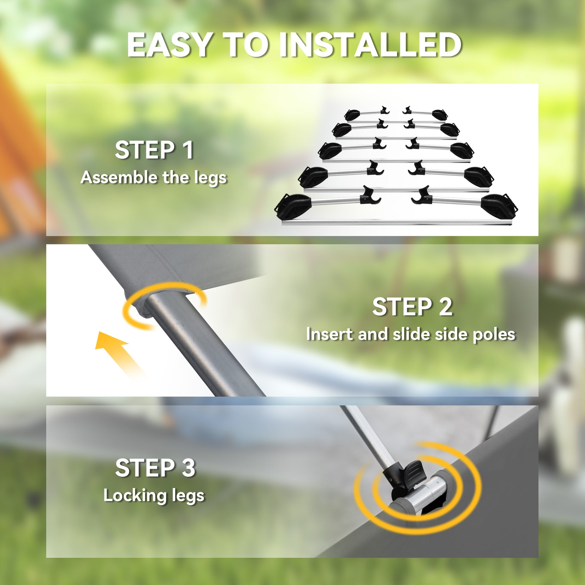 Sleeping when camping is never the great experience. Let's put an end to this, with the help of this Outsunny camping travel cot. A fully buildable design - comes with legs, side poles and top fabric - set up and take down, put in the bag and take with you wherever you wantmakes being comfortable on camping trips ever so easy. The top fabric holds your body comfortably, the legs elevate you so you don't have to touch the ground.