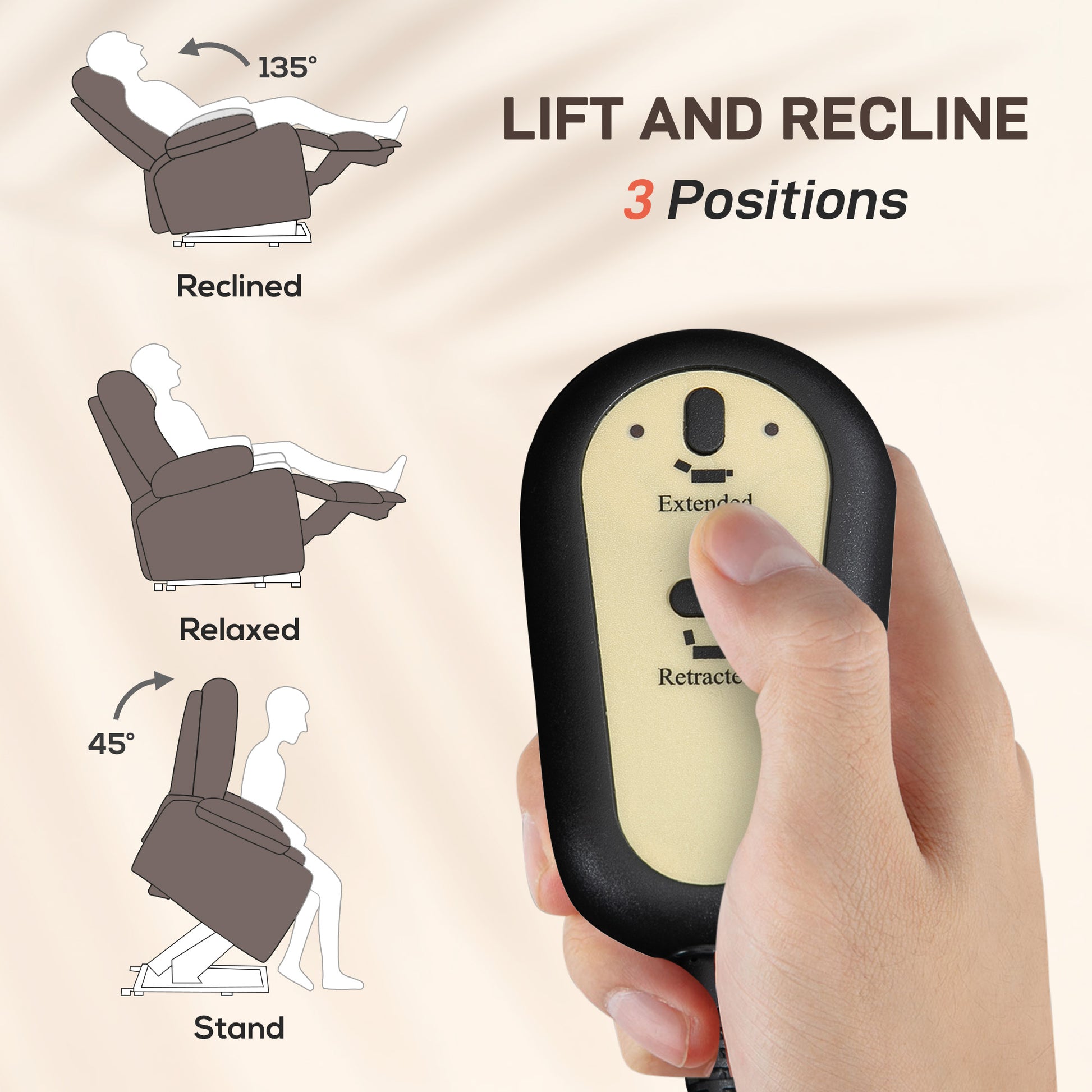 For those with mobility issues - this riser and recliner chair is here to help. Rising up to a 45° angle, it helps you to sit and relax whenever you want. With the 135° back reclining angle and footrest, you can lie back and elevate your body however you want. It comes with a built-in LED light with adjustable magnifying glass - read, work and complete tasks with ease and without having to move.Specifications