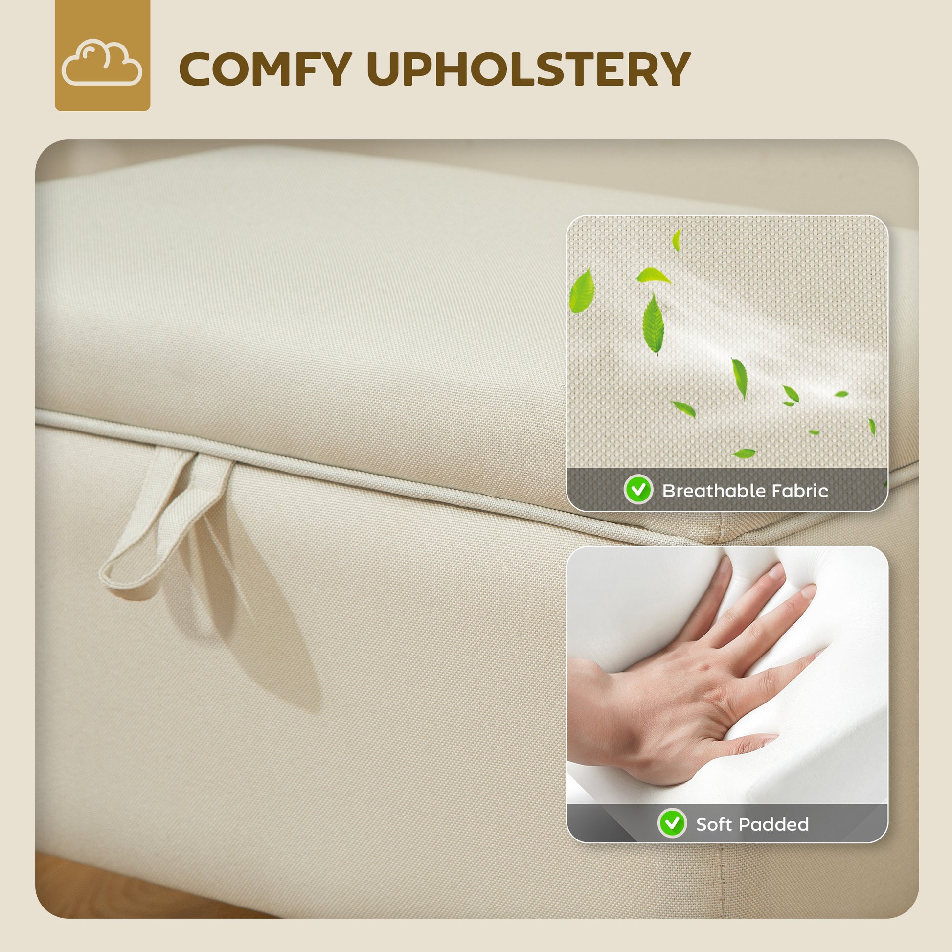 Linen Storage Ottoman Storage Box with Rubberwood Legs, Beige