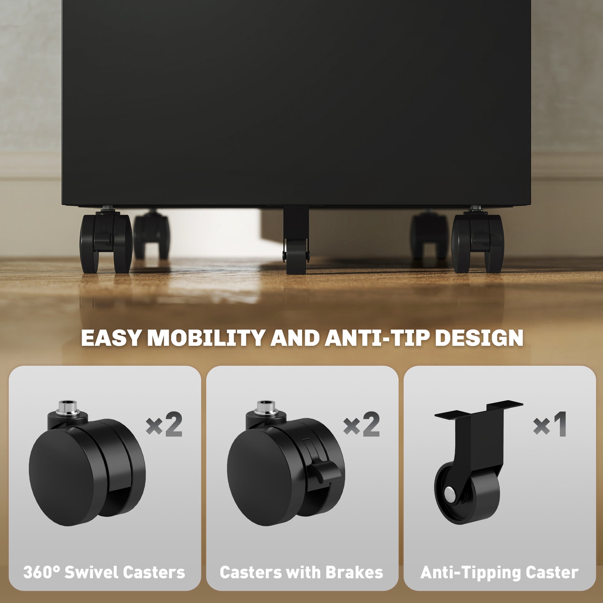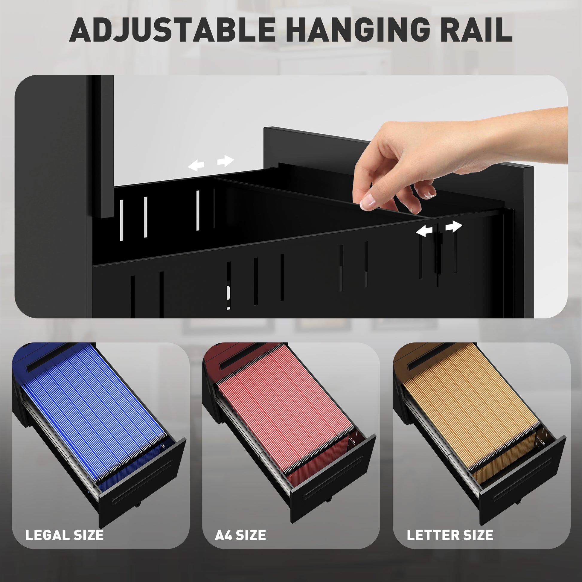 Discover the metal filing cabinet from Vinsetto, a space-saving marvel with a narrow design that fits snugly under your desk and near your feet. This lockable office drawer unit features two small drawers with a removable pencil tray for stationery and a large drawer with adjustable rail for A4, legal and letter files, doubling as a handy printer stand. Effortlessly glide it around on 360° swivel wheels, keeping everything secure and within reach. Great for any bustling home office.Specifications