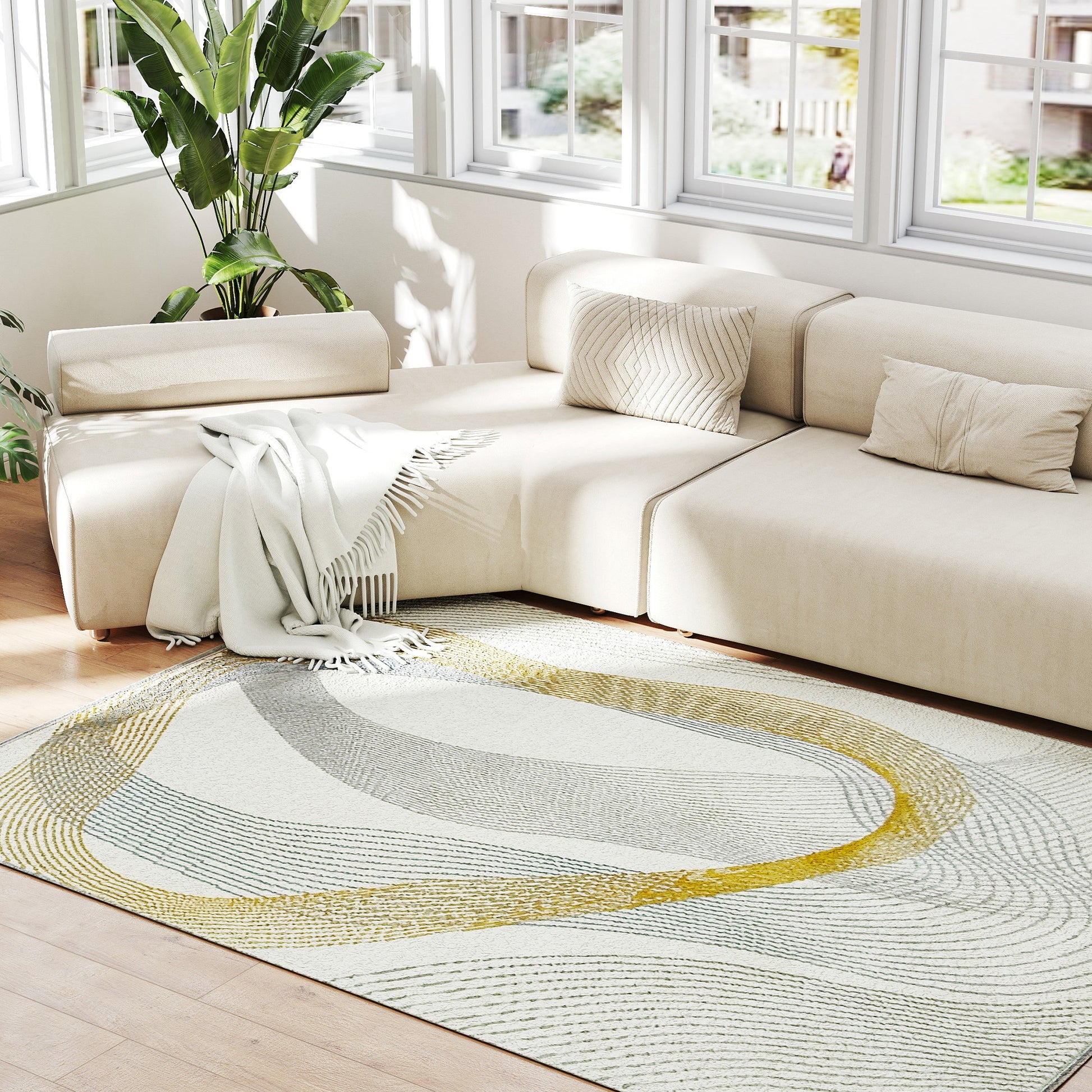 Machine Washable Rug, Allergy-Friendly Floor Carpet, Cream White
