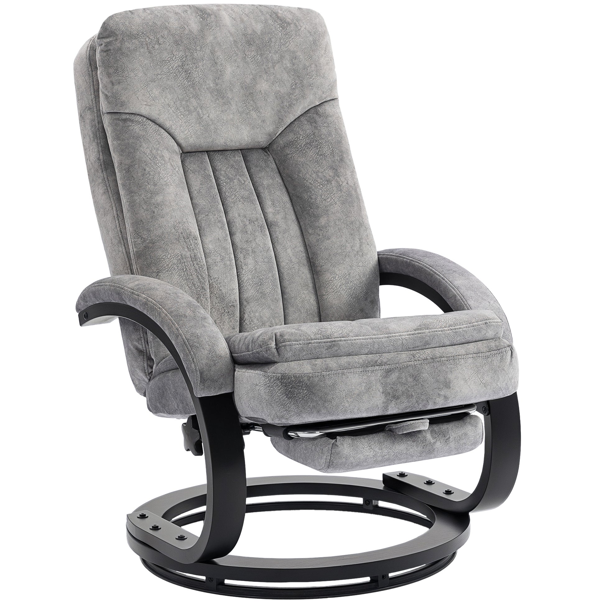 Manual Recliner Armchair with Footrest, Wooden Base, Grey