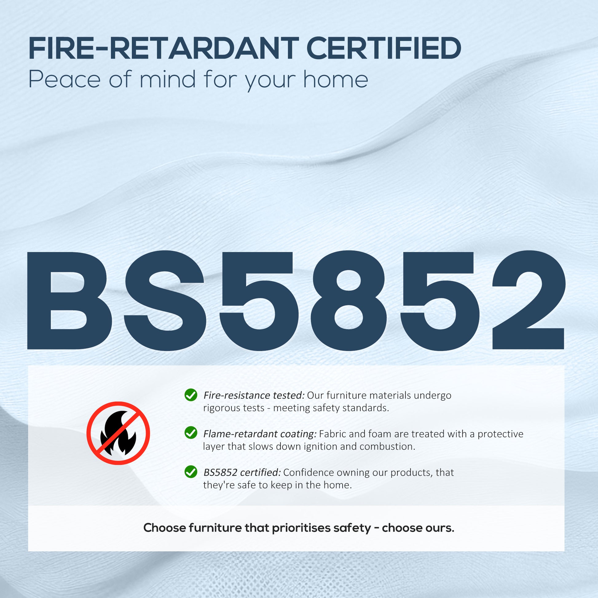 - Certification: BS5852 (Fabric and padding)