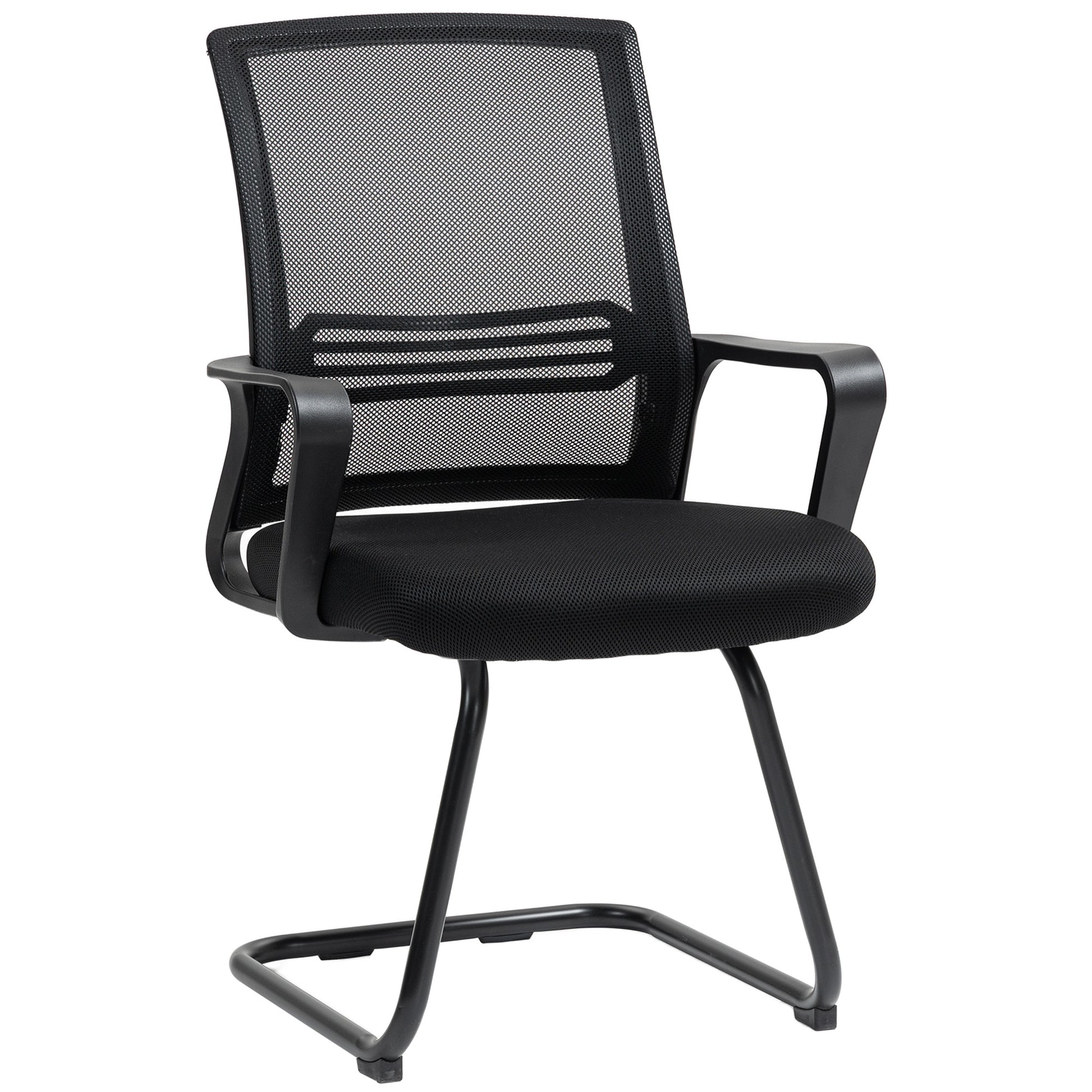 Meeting Office Chair, Mesh Reception Chair with Sled Base, Black
