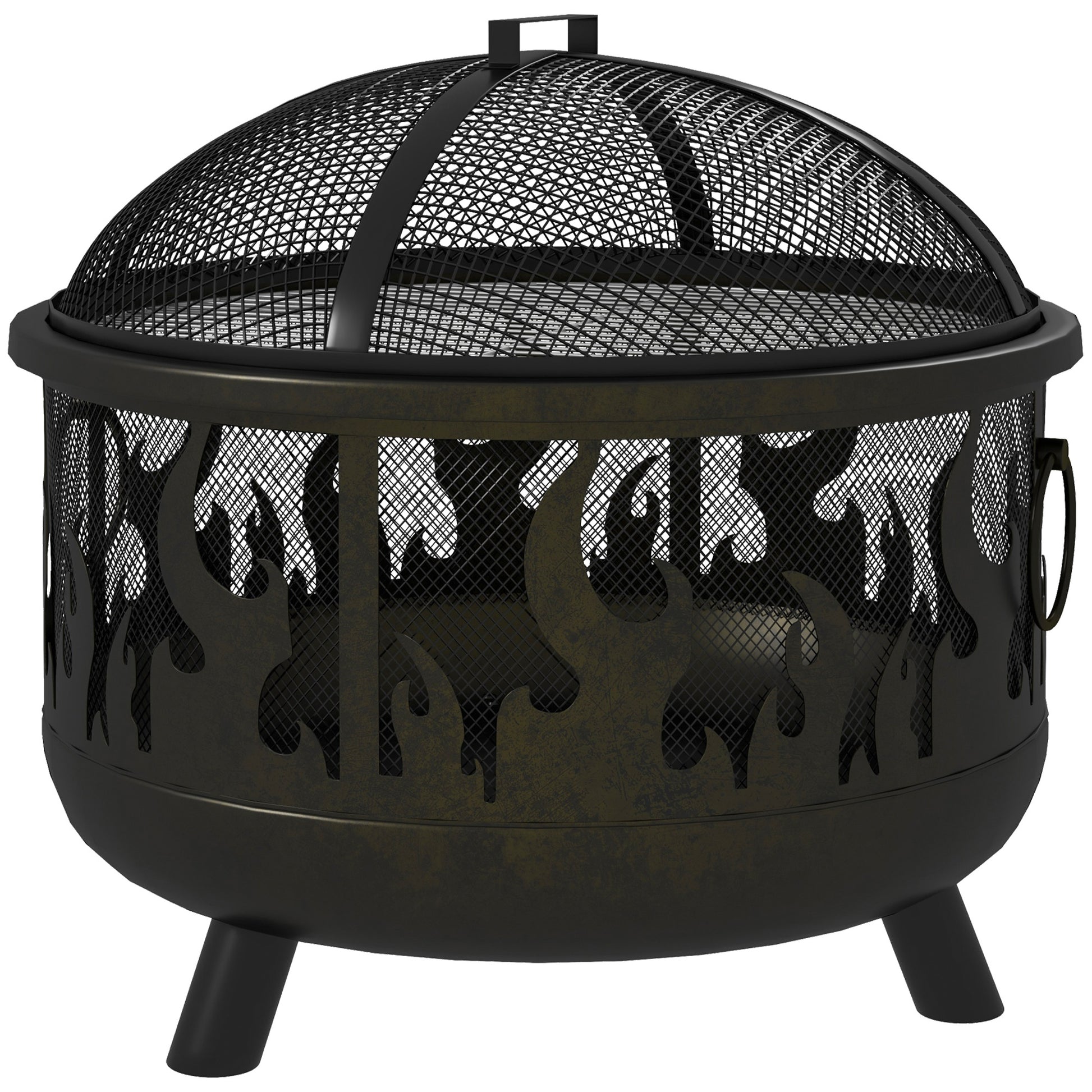 - 500℃ resistant steel: A sturdy structure which can effectively withstand high temperature. Stump feet on the bottom keep the fire pit for garden balanced and steady.