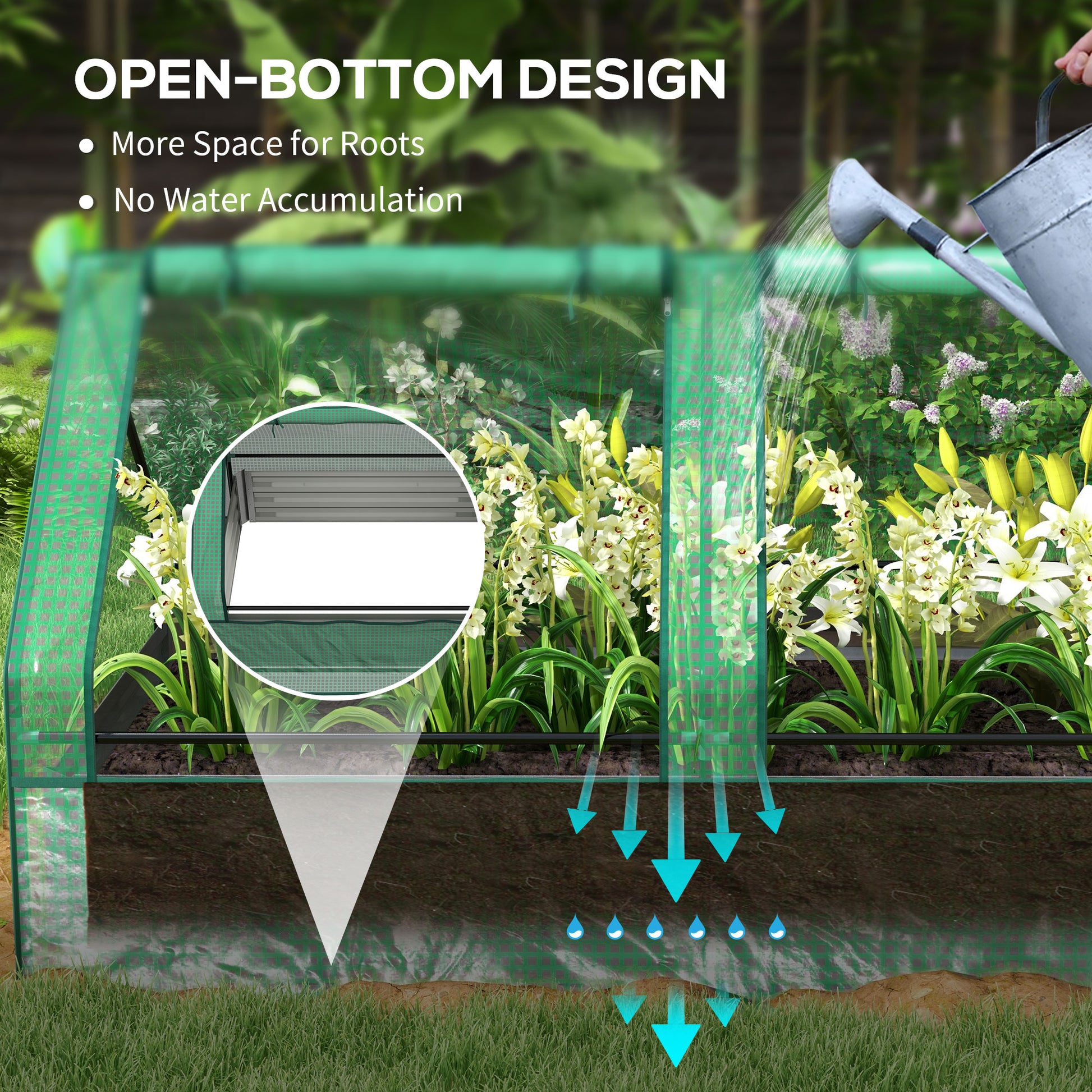 Metal Planter Box with Cover, Raised Garden Bed with Greenhouse, for Herbs and Vegetables, Green and Grey
