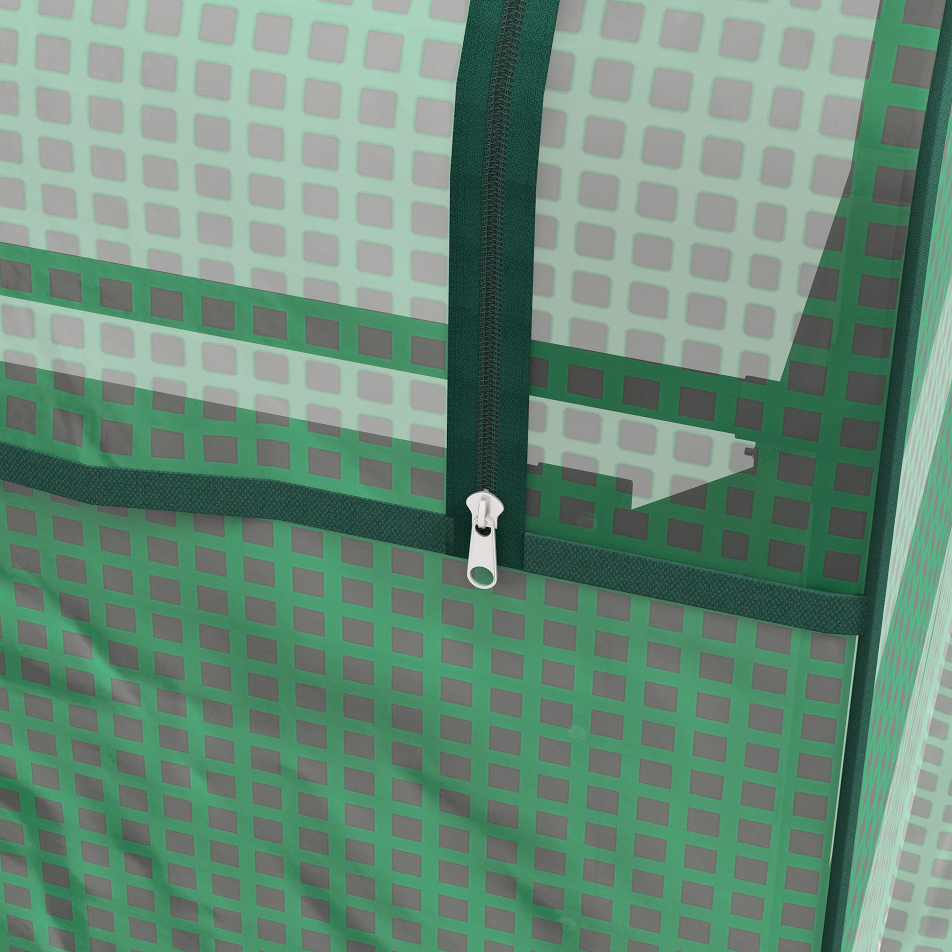 - Top plastic cover: Creates shelter to shield plants from outside weather. Plastic greenhouse cover features two roll-up windows to access inside and allow air in. 10cm edges to bury into soil for stability.