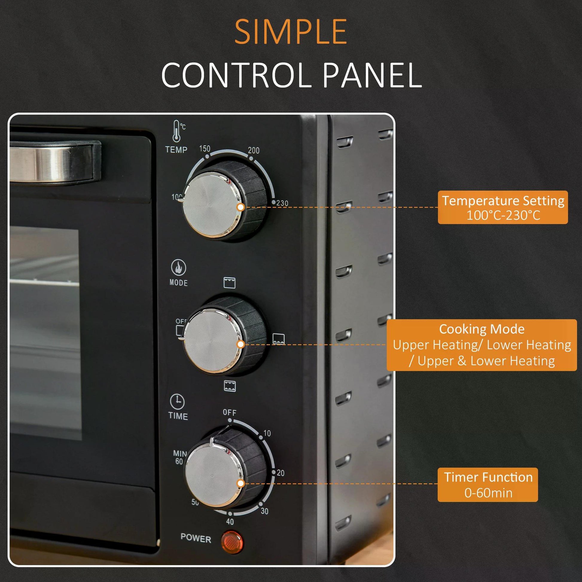 - 100°C-230°C with timer: Easy to set to a heat you need with this portable oven, can cook foods separately for 2 tiers at different temperature. Perfect for slow and low cooking, too. Timer between 0-60 minutes, so you can leave on when away.