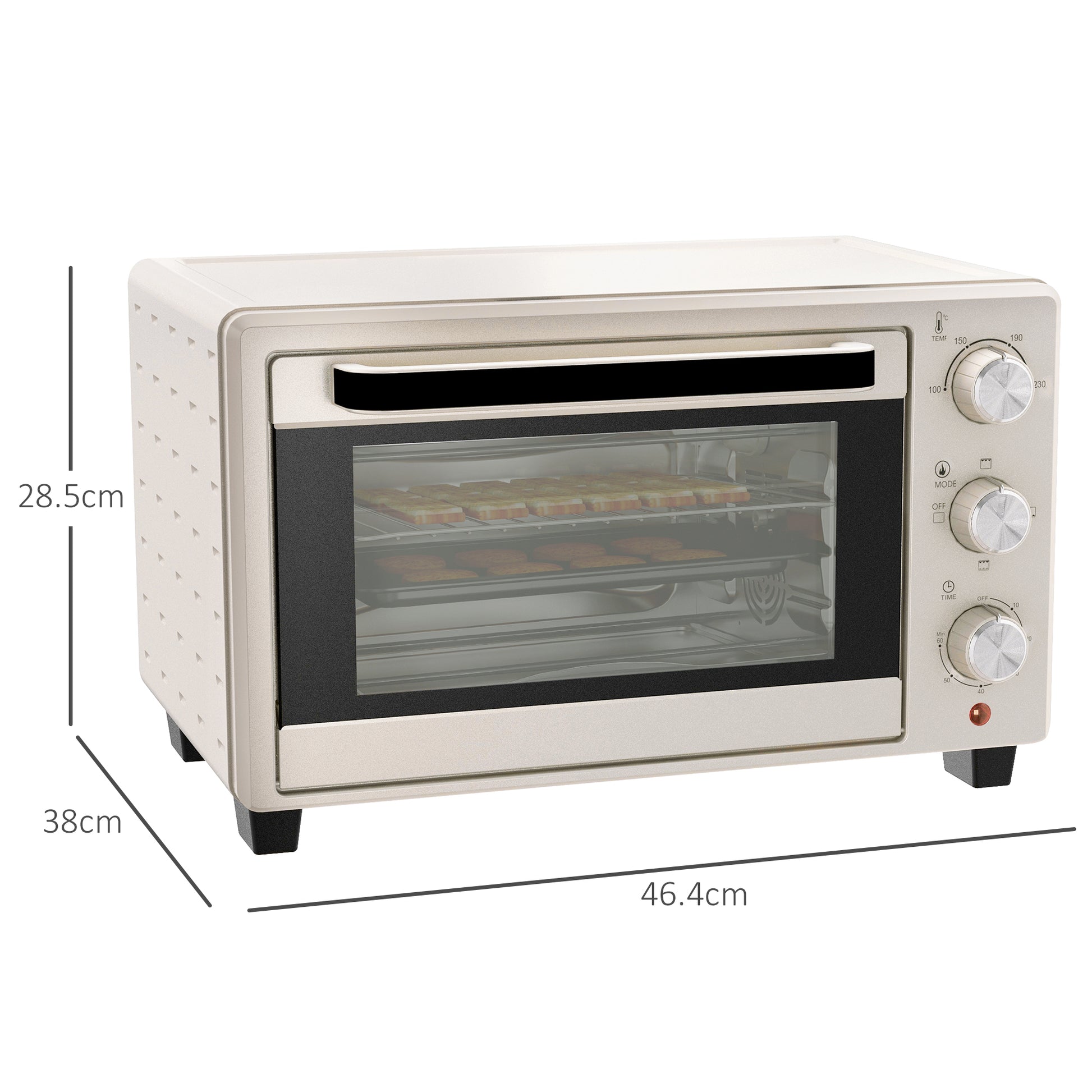 Mini Oven 21L Electric Grill w/ Adjustable Temp Timer 1400W, Cream