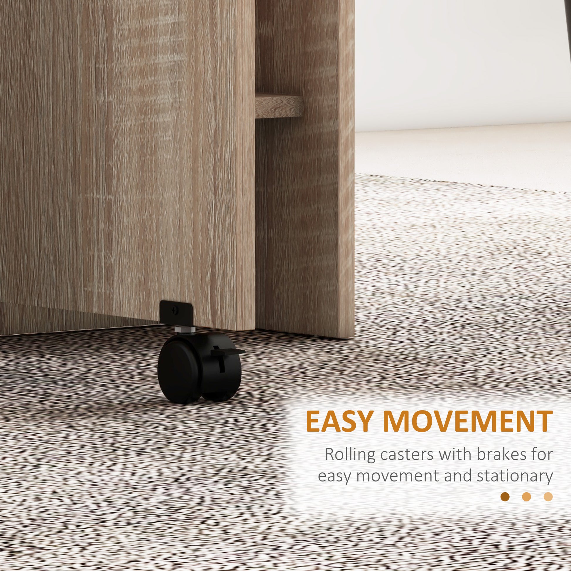 Mobile Drop Leaf Dining Table, Folding Desk with 2 Wheels, Natural