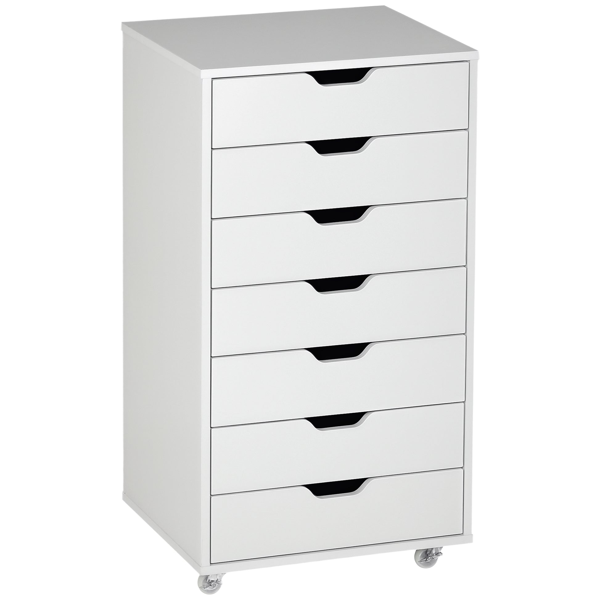 Mobile Filing Cabinet, 7-drawer File Cabinet with Wheels, White