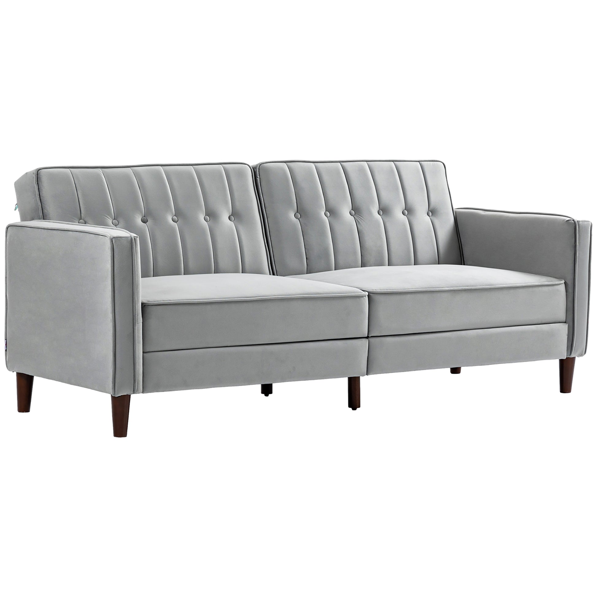 Modern Convertible Sofa Futon Velvet-Touch Tufted Couch Compact Loveseat with Adjustable Split Back, Grey