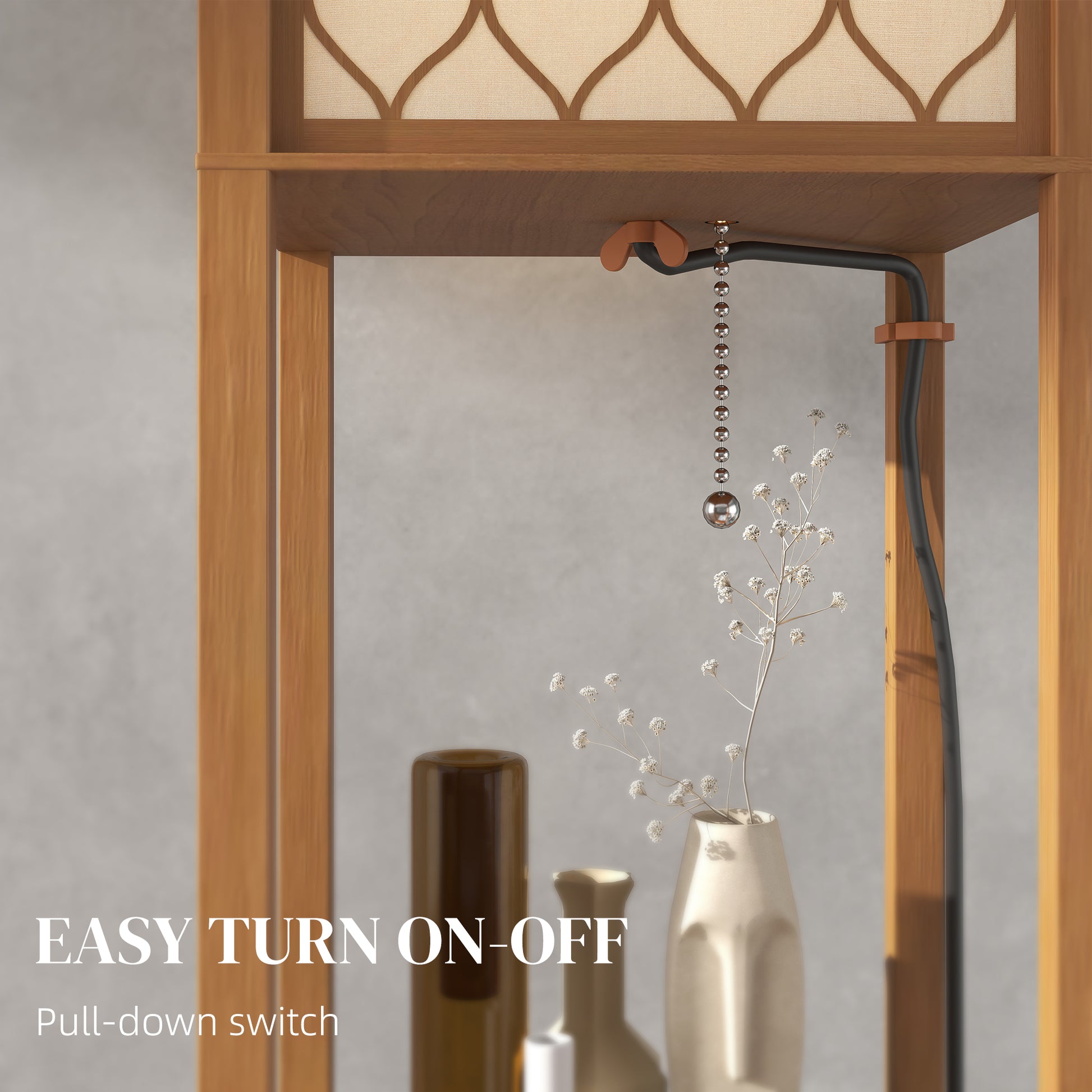 Modern Floor Lamp Light with 3 Shelves Fabric Lampshade Natural