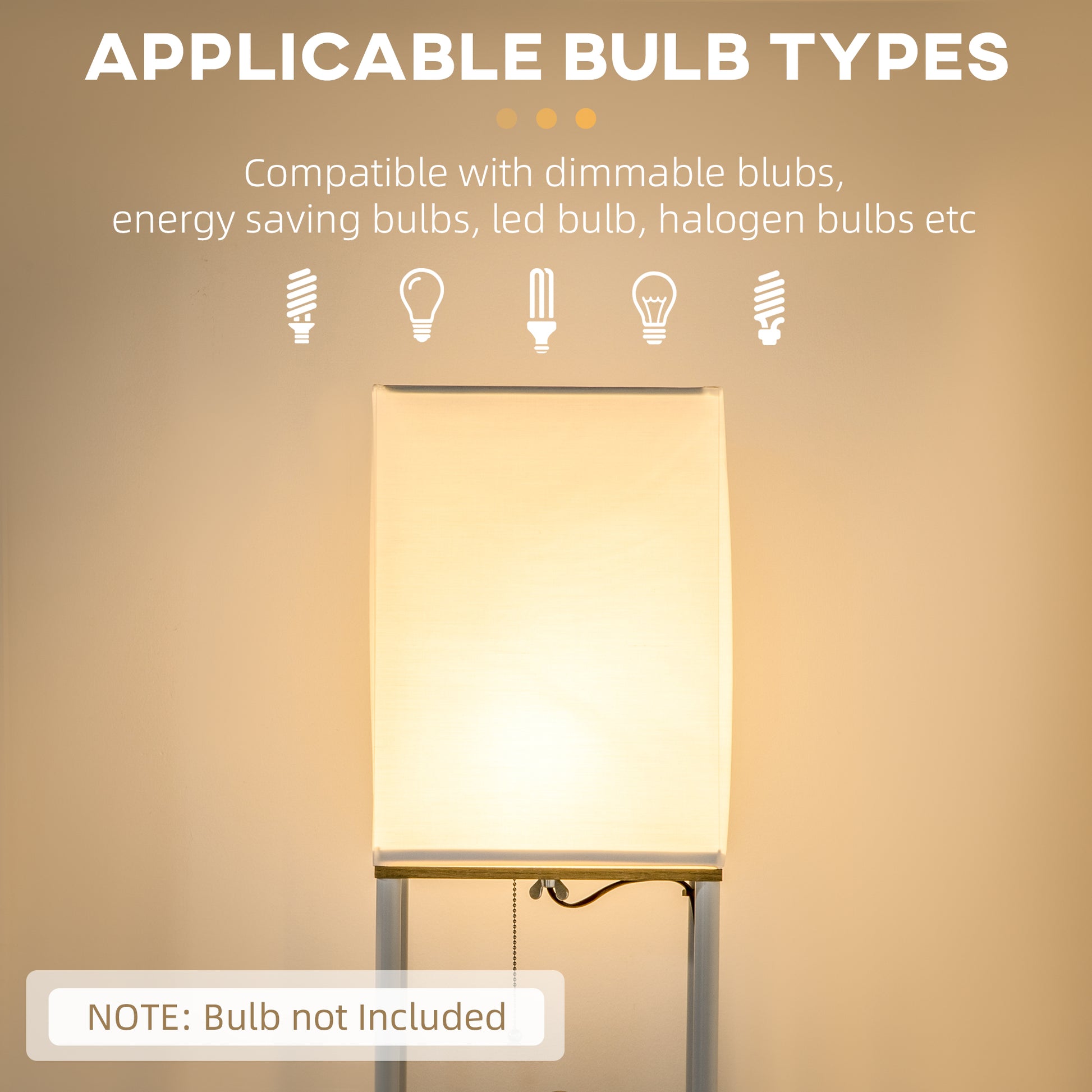 Modern Floor Lamp with Shelves, 3 Layer Shelf Tall Standing Lamp with Fabric Lampshade, Pull Chain Switch (Bulb not included)