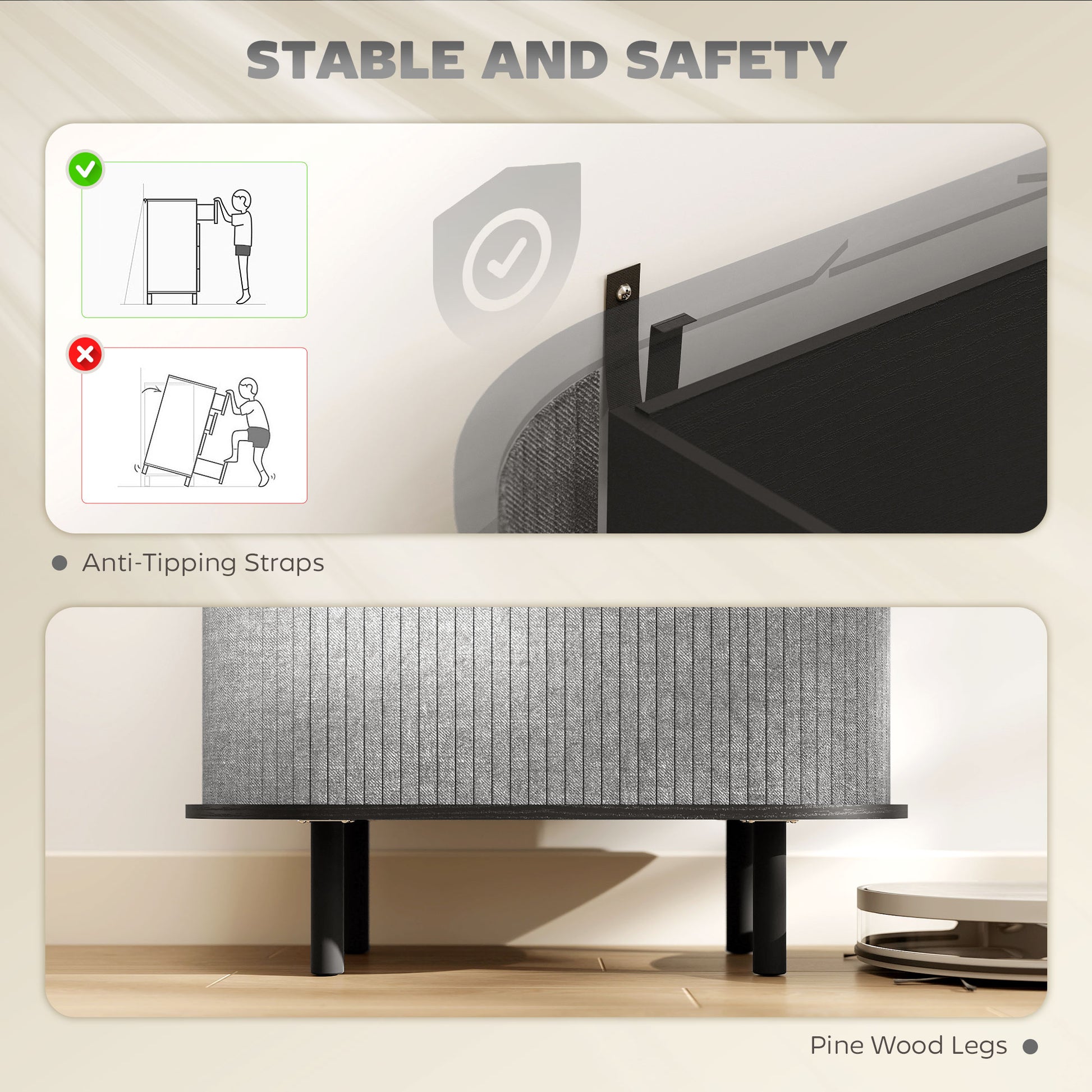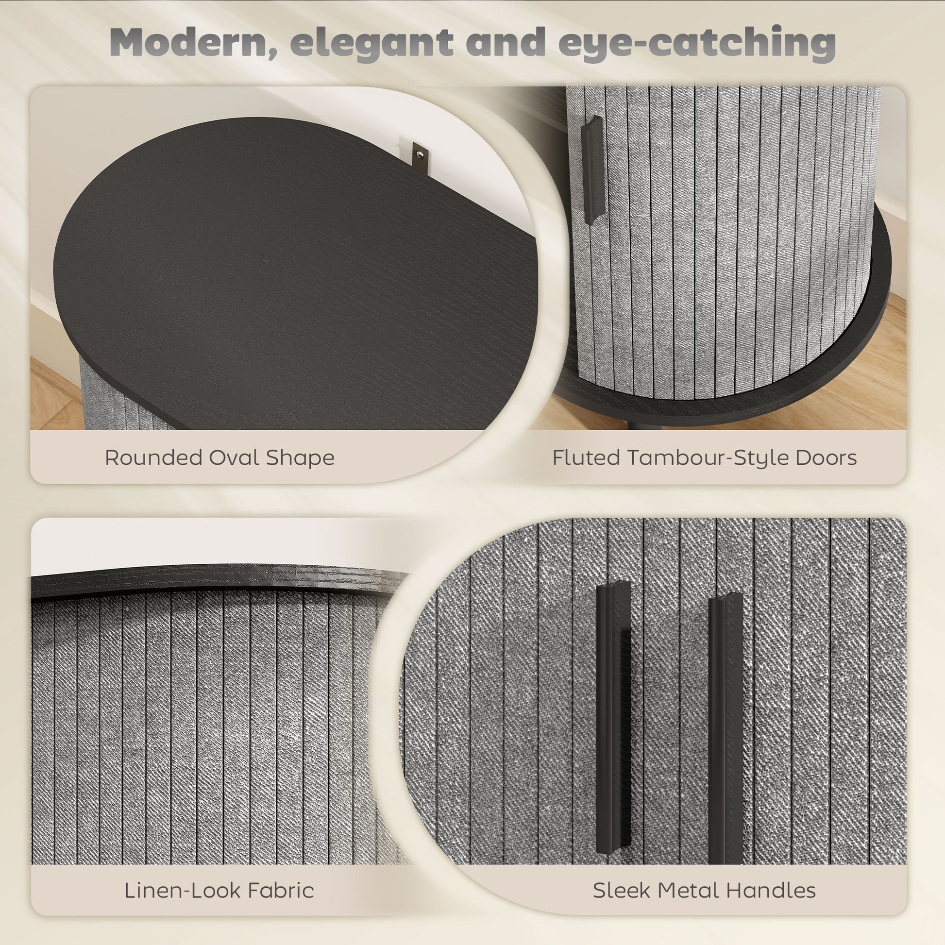 Looking for a beautiful way to display your favourite decorations? This oval sideboard does more than store—it showcases. With smooth curves and fluted tambour-style doors covered with linen-look fabric, the buffet cabinet brings subtle texture and warmth to any space. Slide open the doors to hide clutter and keep the top clear for candles, vases, or framed photos. Great for elevating your living room, hallway, or dining area.Specifications