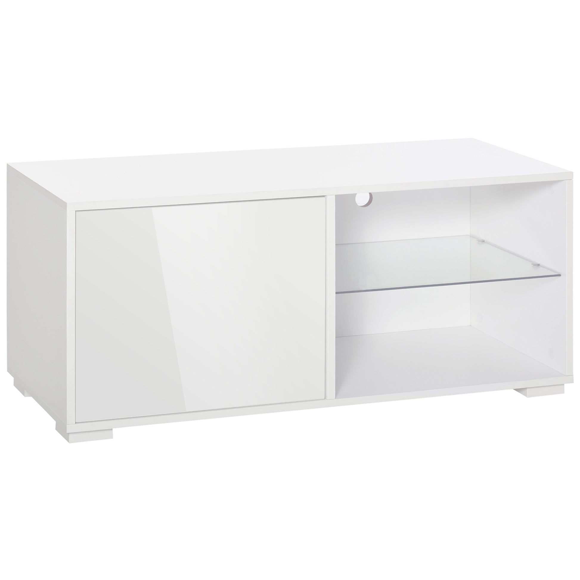Modern TV Stand Media Unit w/ High Gloss Door Cabinet 2 Shelves Living Room Office Home Furniture White