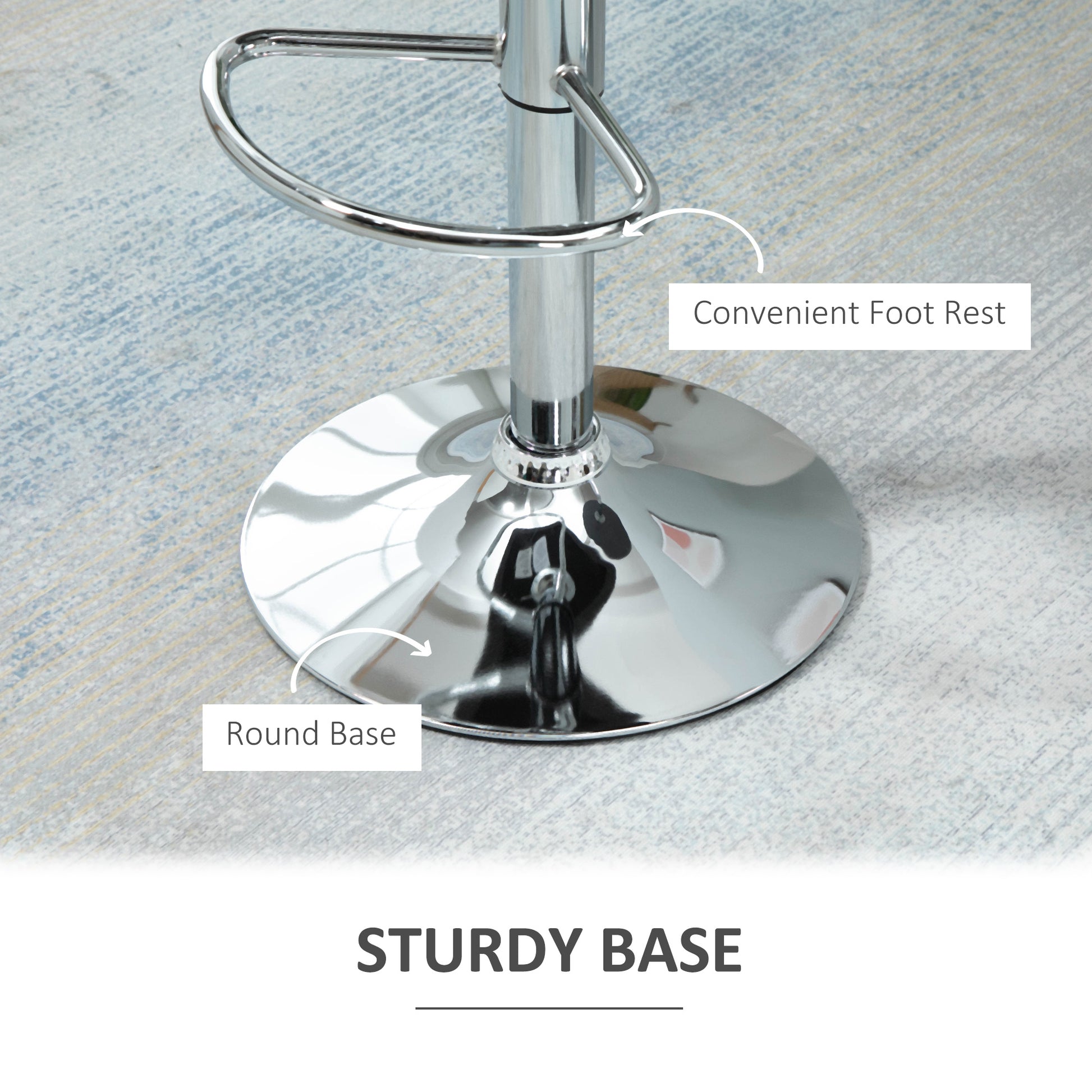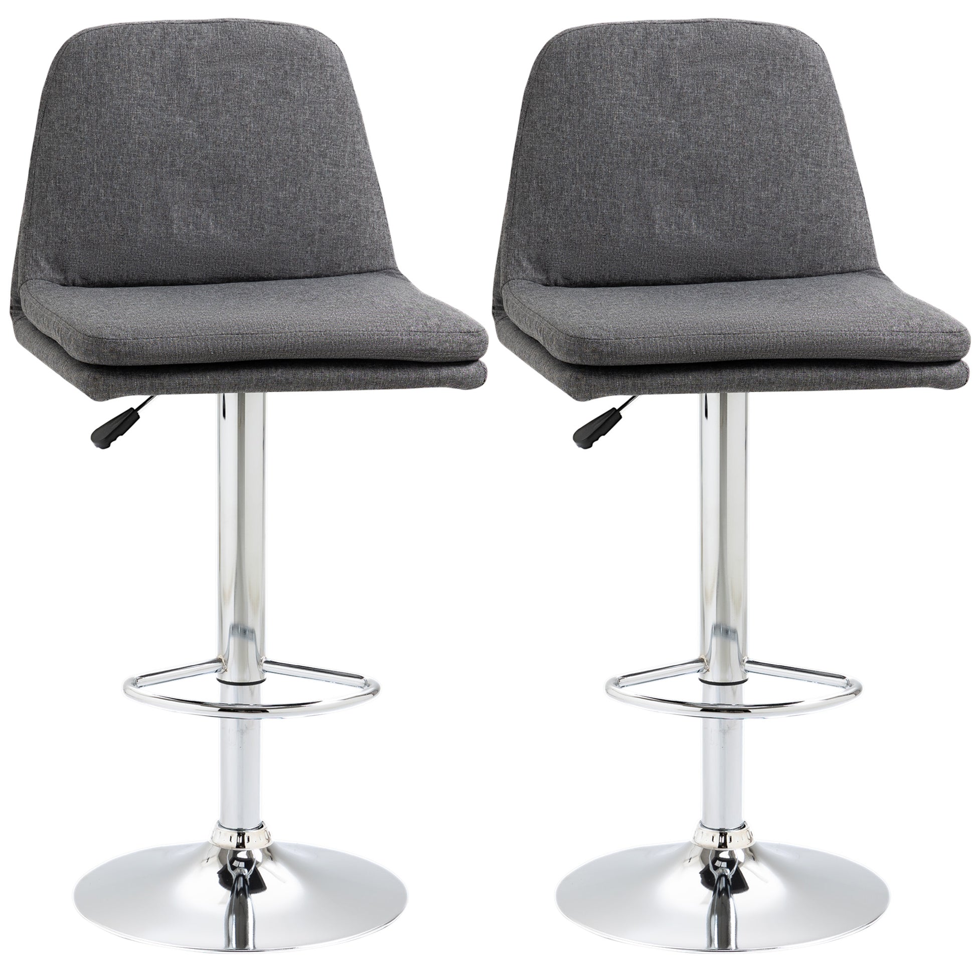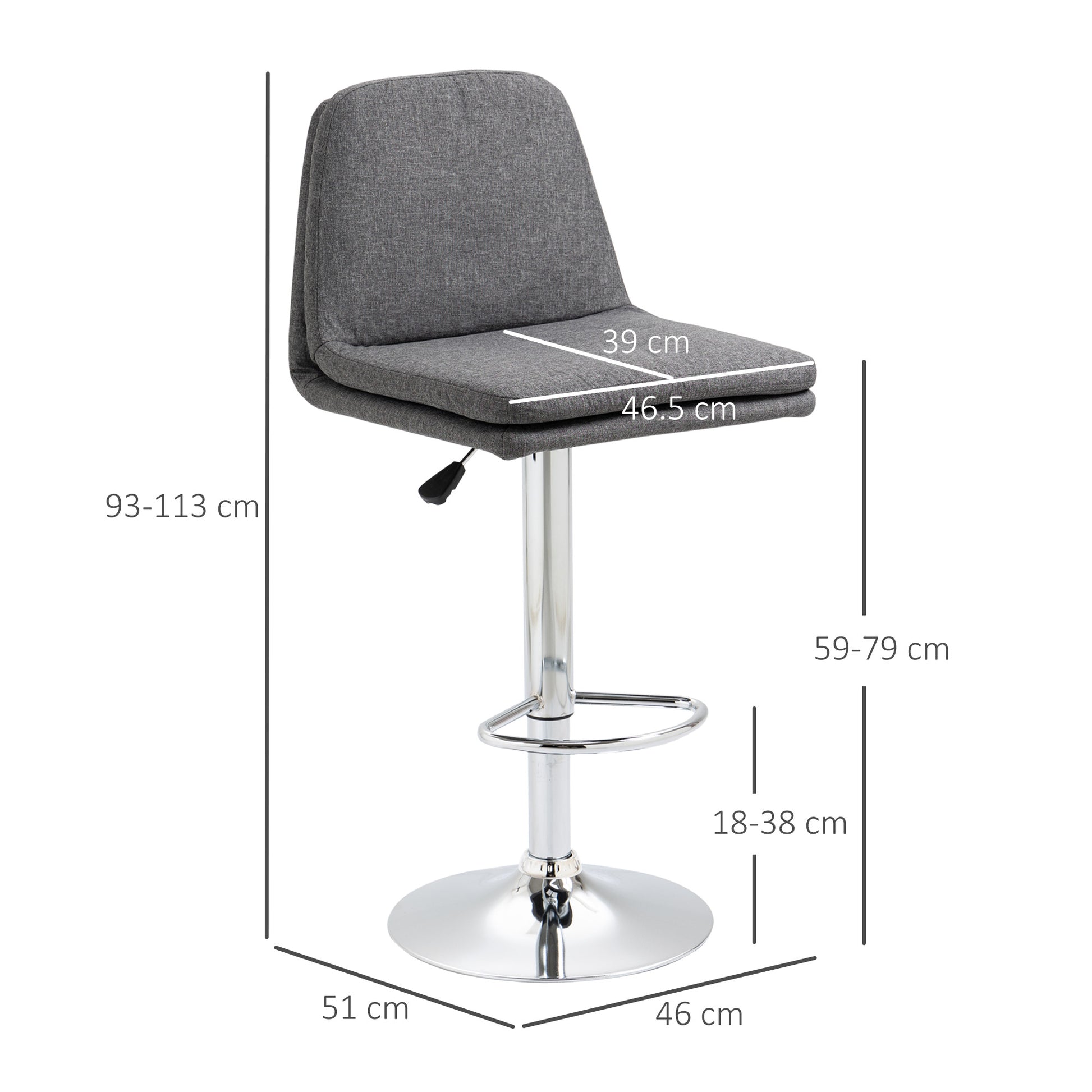 Complete your kitchen counter in true comfort - look to these two bar stools. Armless design and full-swivel seat so your body can move ever-so freely, the seats are extra padded for extra, extended comfort. The linen-look upholstery is smooth and easy to clean. The curved backrest and footrest help support your posture. Height adjustable to suit different level surfaces, complete with a round base for balance.