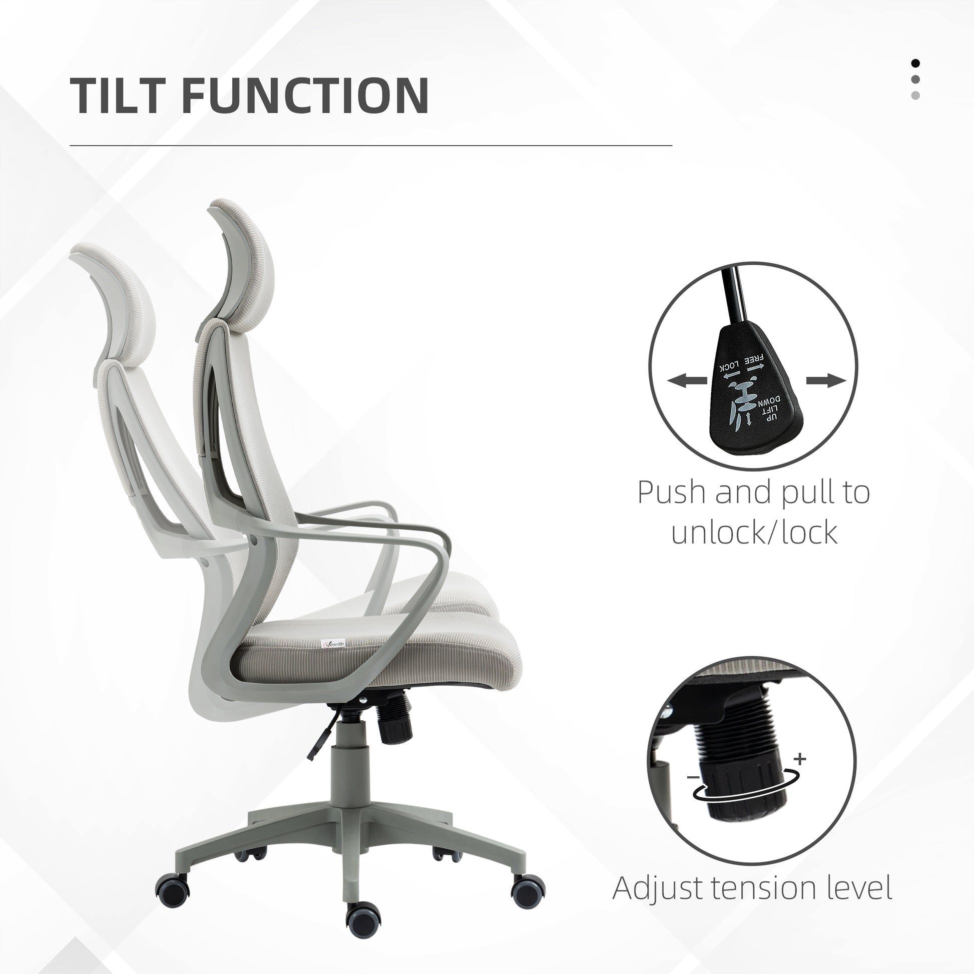 Ergonomic Office Chair w/ Wheel, High Mesh Back, Adjustable Height Home Office Chair - Grey
