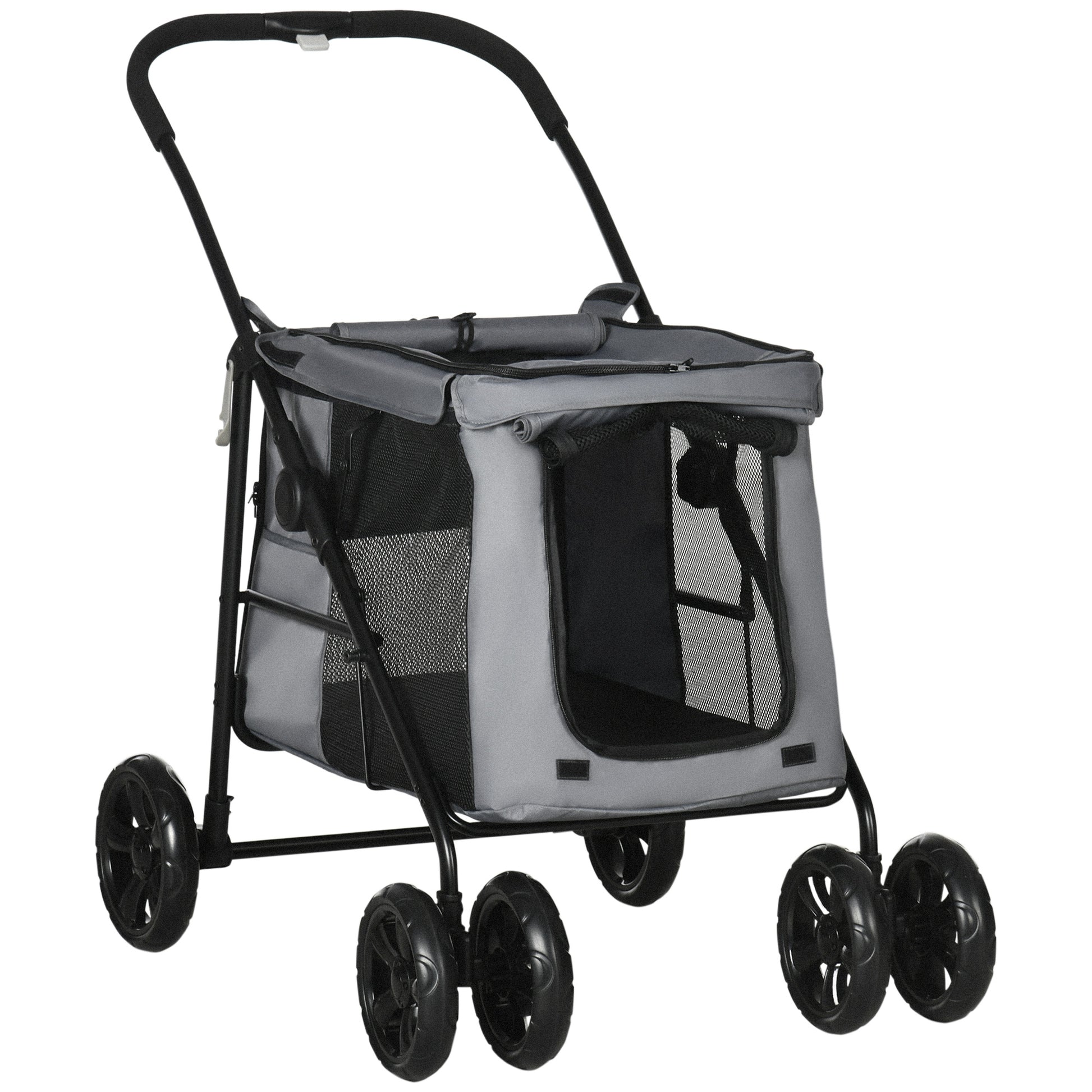 One-click Foldable Pet Stroller w/ Mesh Windows, for Small Pets - Grey