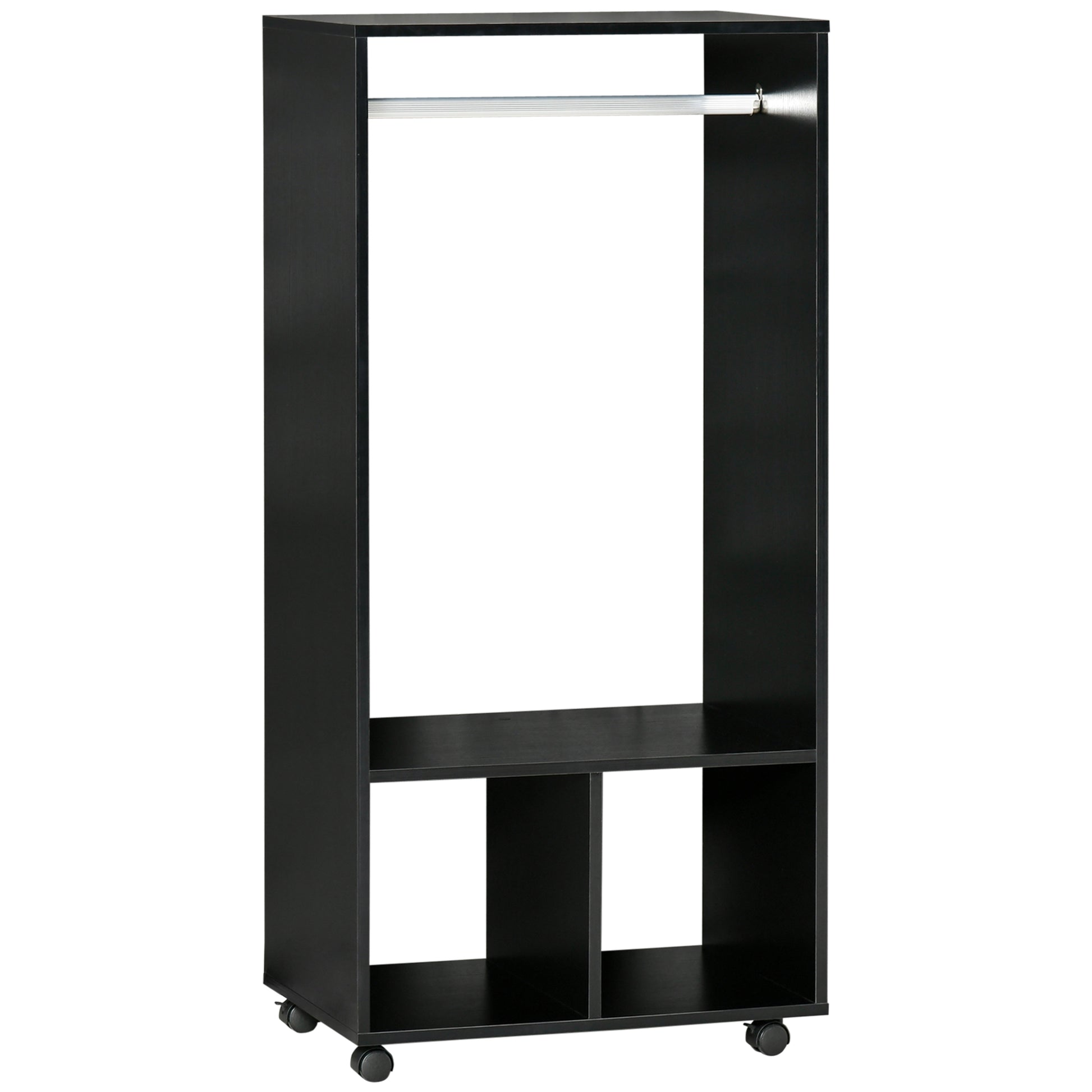 Grabbing your outfit-of-the-day in the mornings just got easier - thanks to this open wardrobe . The small wardrobe is made from particle board for durability - working with the aluminium hanging rail to fully support and hang clothes in place - no collapsing with garments creasing. Also features two open shelves for keeping folded items and shoes stored. An open design, helps to keep clothing smelling as fresh as possible. Finished with four wheels to move around easily.Specifications