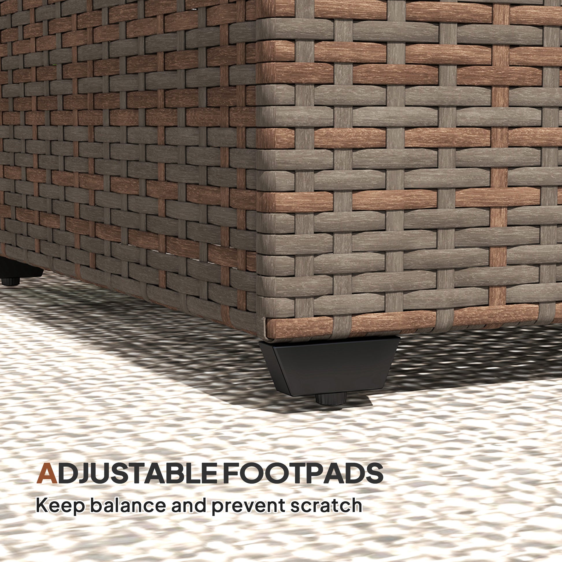 Forever style for your garden with this rattan garden table. A galvanised steel frame with powder coating for a strong core structure wrapped in tough plastic rattan, the garden side table effortlessly matches your current rattan garden furniture. It's fitted with a 5mm thick tempered top for a sleek touch and a safe holding place. Complete with adjustable feet for stability.Specifications