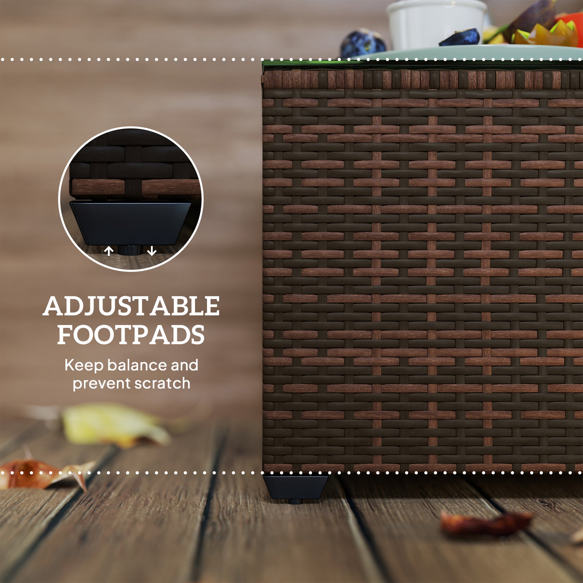 Outdoor Coffee Table with Glass Top, Rattan Side Table, Brown