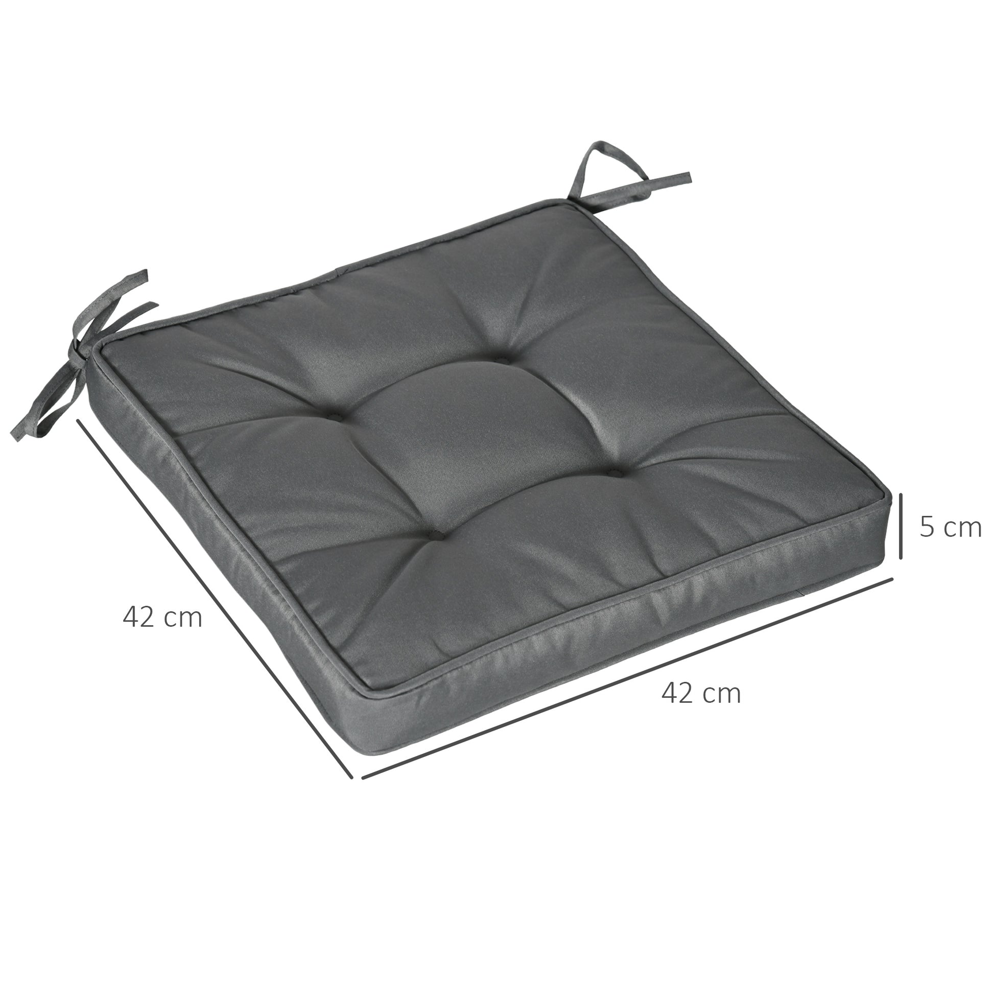 Outsunny Set of 4 Garden Seat Cushion with Ties, 42 x 42cm Replacement Dining Chair Seat Pad, Grey