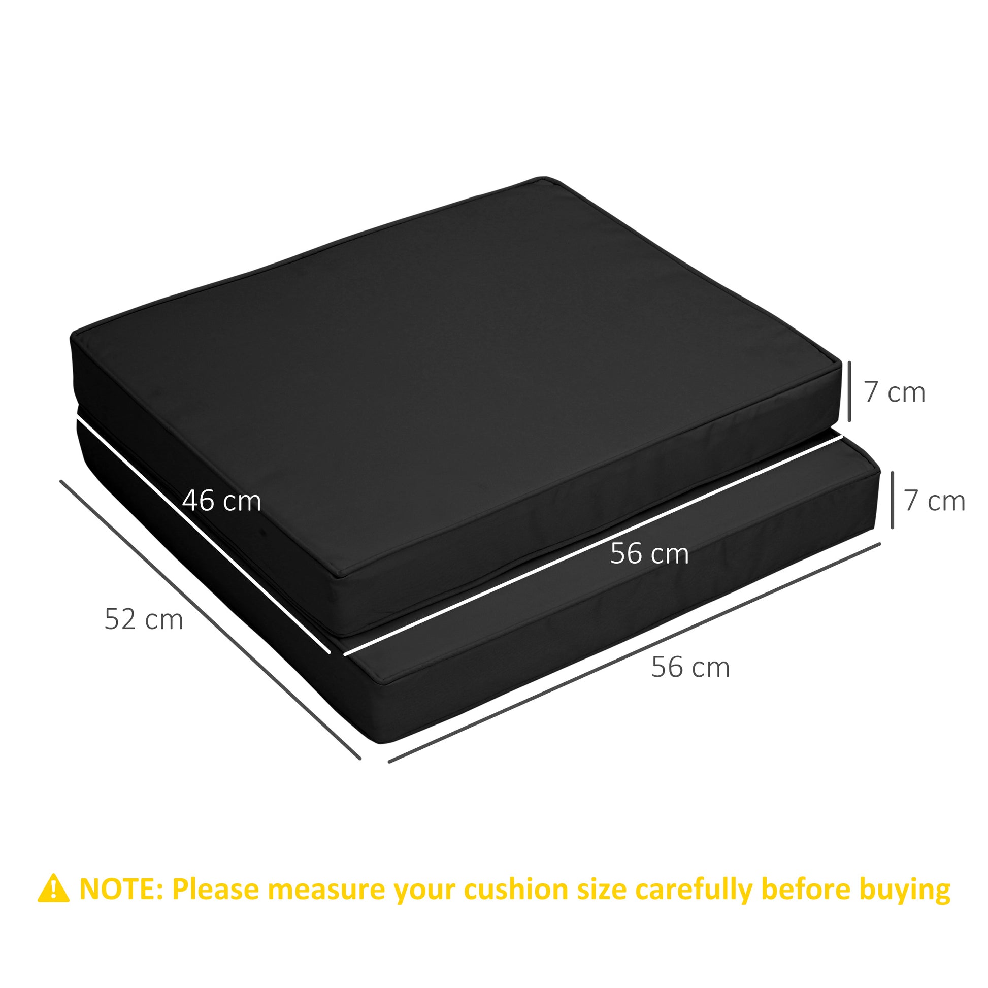 Two outdoor seat cushions, from Outsunny, to transform your seating in comfort. Polyester fabric covers are soft on the skin - they are also removable and washable to keep clean easily. Sponge filling for comfort. With a seat and back cushion included for upper and lower body comfort and support.
