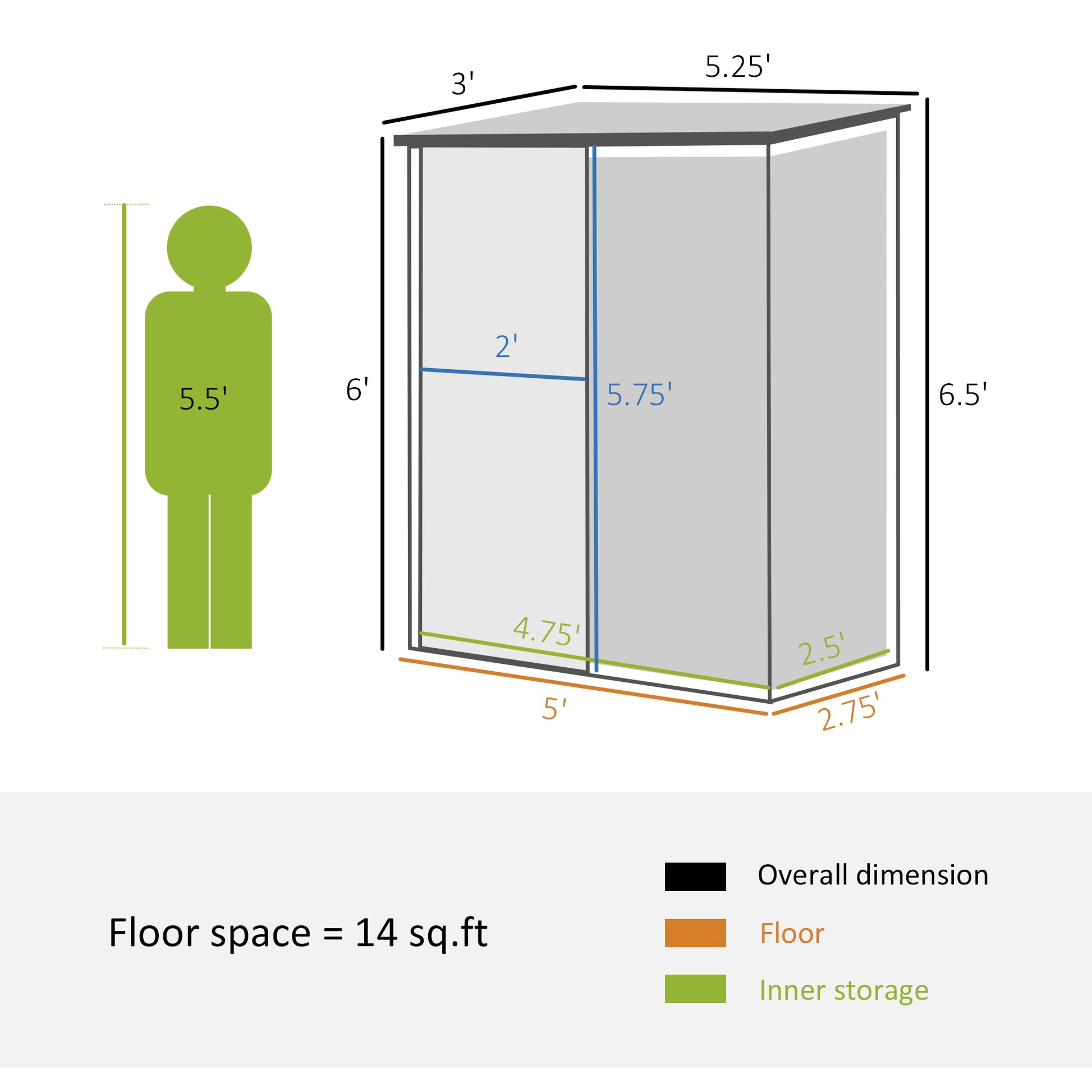 - 5.3 x 3.1ft size: Metal shed has open and spacious inside for storing tools, equipment and other garden/outdoor pieces.
